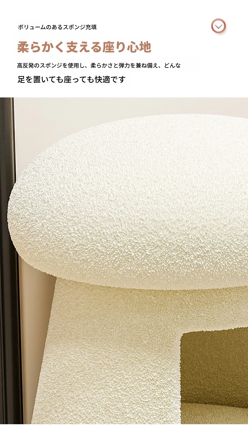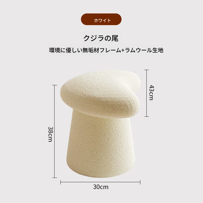 【ホワイトのクジラの尾兼靴ベンチ】高密度ラムフリース+無垢材フレーム