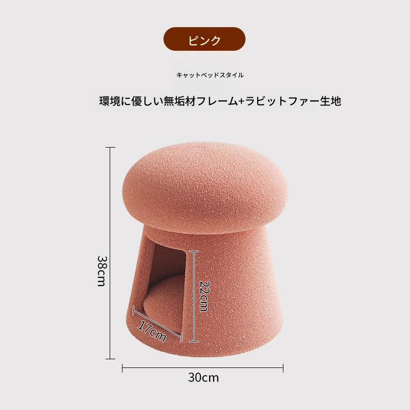 【ピンクの猫ベッド兼靴ベンチ】高密度ラムフリース+無垢材フレーム