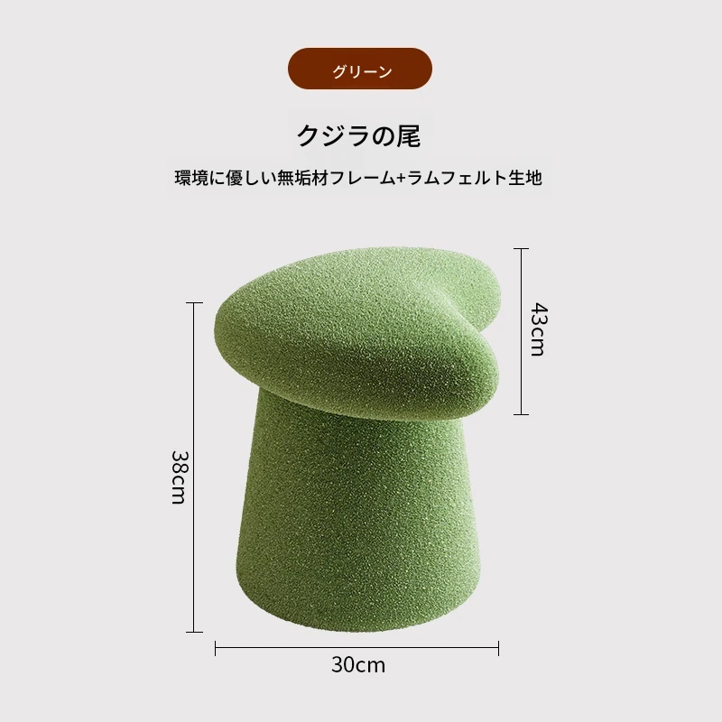 【グリーンのクジラの尾兼靴ベンチ】高密度ラムフリース+無垢材フレーム