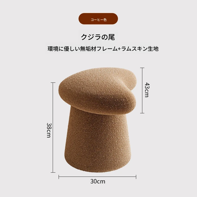 【ブラウンのクジラの尾兼靴ベンチ】高密度ラムフリース+無垢材フレーム