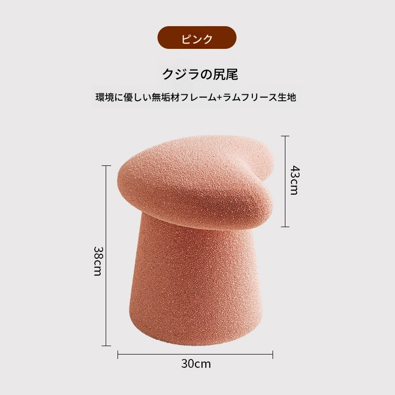【ピンクのクジラの尾兼靴ベンチ】高密度ラムフリース+無垢材フレーム