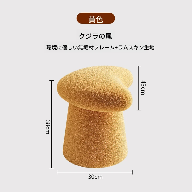 【イエローのクジラの尾兼靴ベンチ】高密度ラムフリース+無垢材フレーム