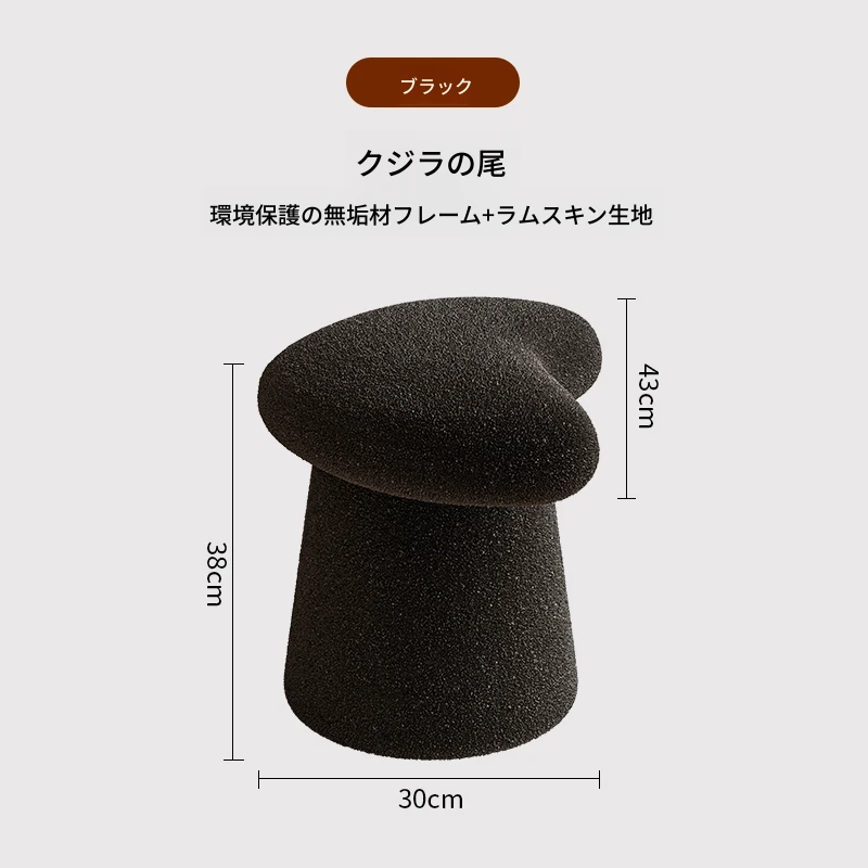 【ブラックのクジラの尾兼靴ベンチ】高密度ラムフリース+無垢材フレーム