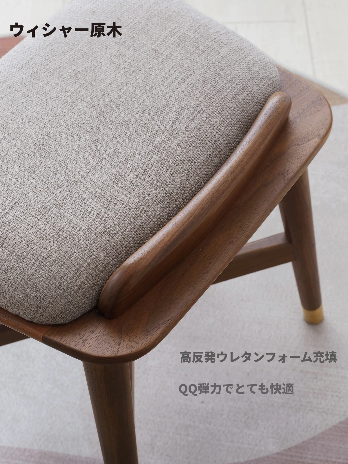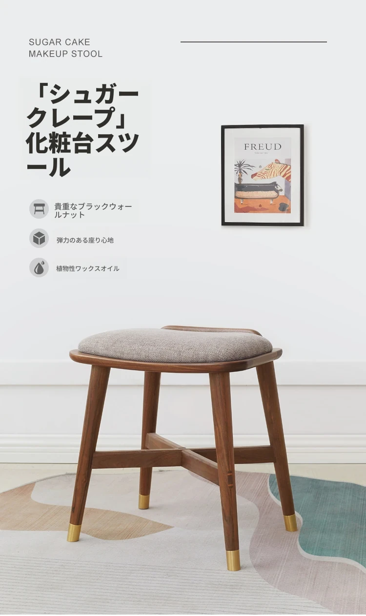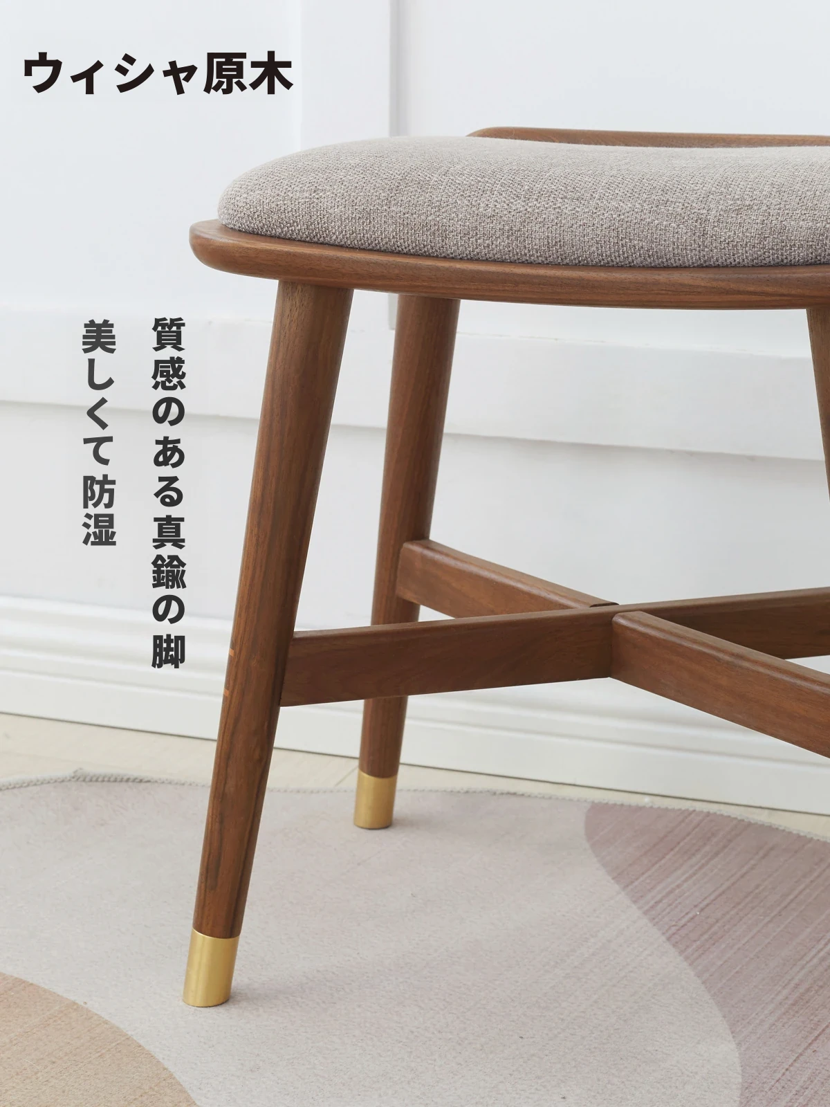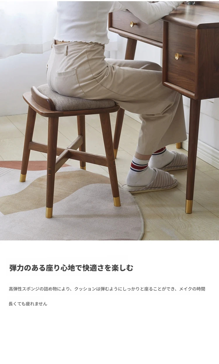 源氏木語×ヴィシャ実木メイクアップスツール 北欧風ラグジュアリー ブラックウォールナット ソフトパッケージ付き 寝室用 家庭用ドレッシングスツール
