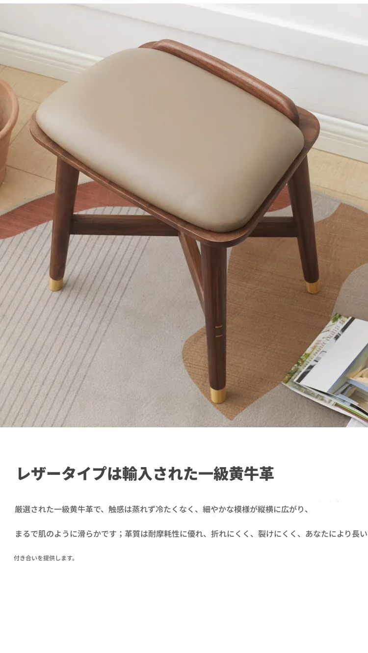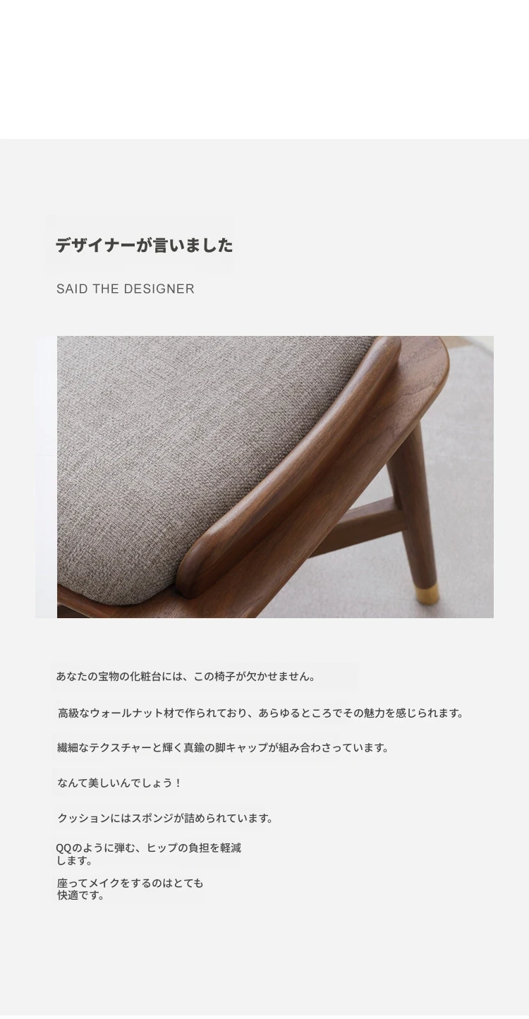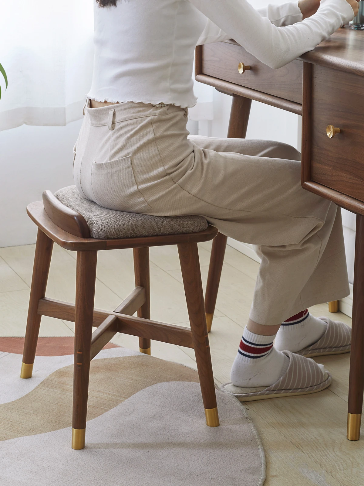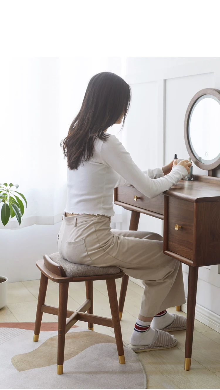 源氏木語×ヴィシャ実木メイクアップスツール 北欧風ラグジュアリー ブラックウォールナット ソフトパッケージ付き 寝室用 家庭用ドレッシングスツール