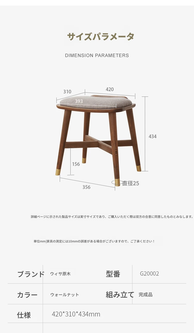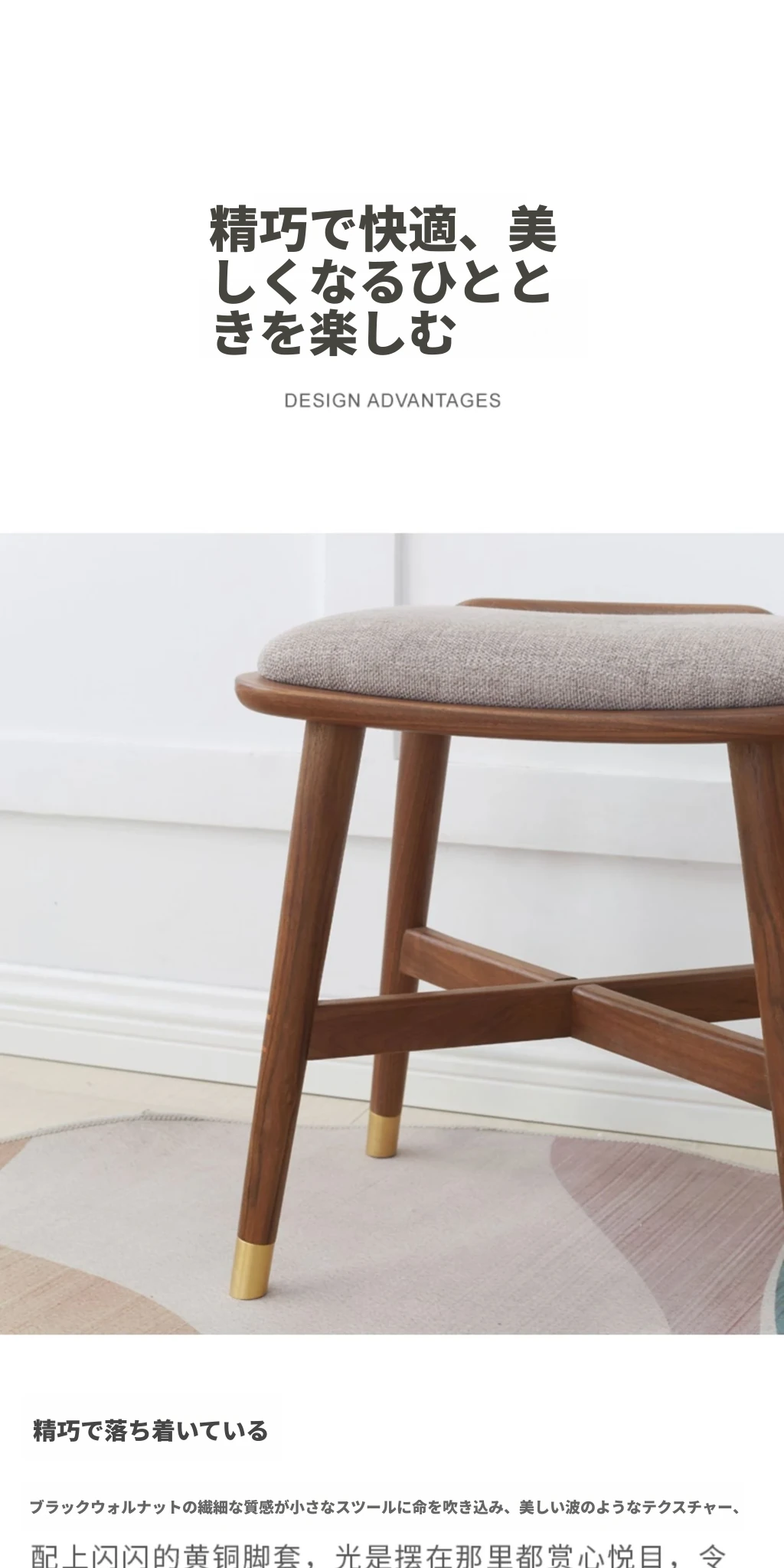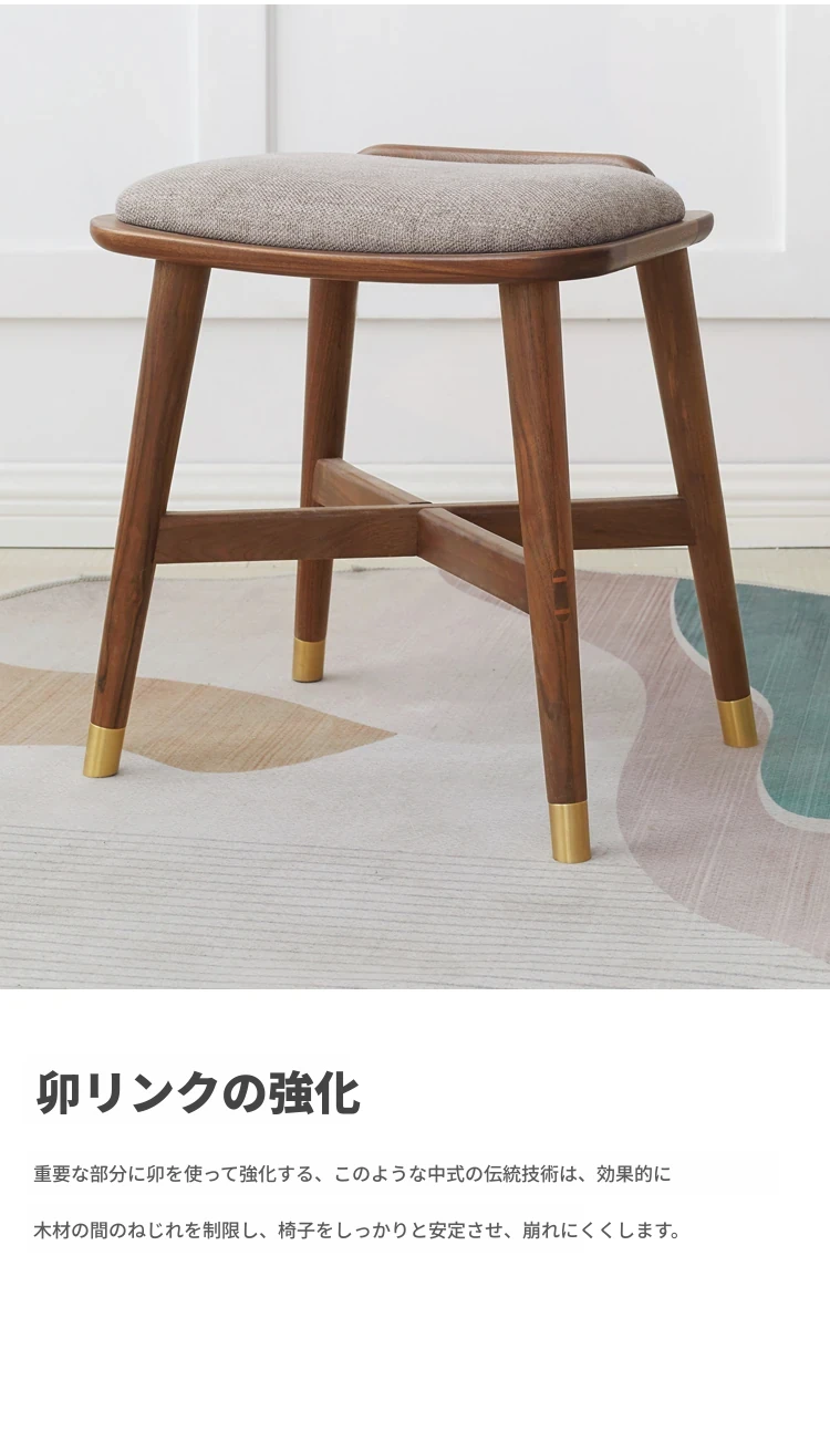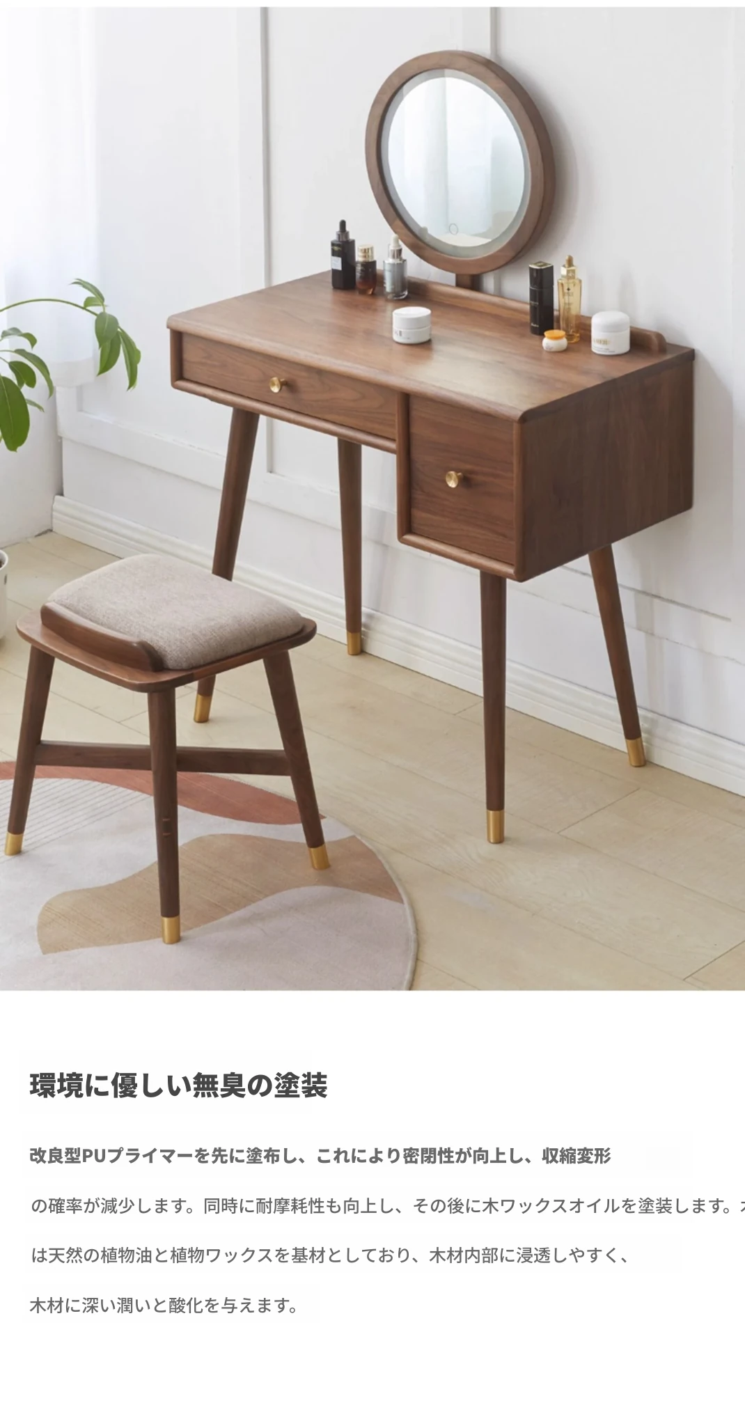 源氏木語×ヴィシャ実木メイクアップスツール 北欧風ラグジュアリー ブラックウォールナット ソフトパッケージ付き 寝室用 家庭用ドレッシングスツール