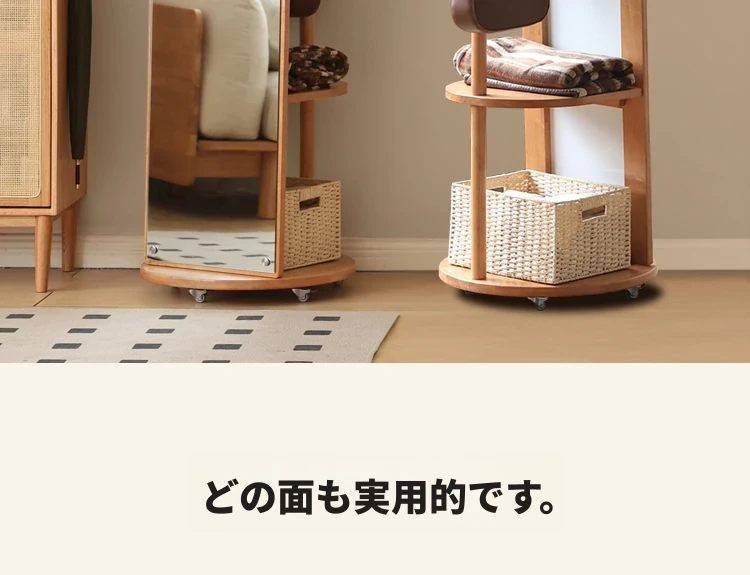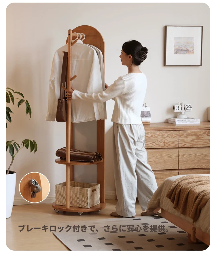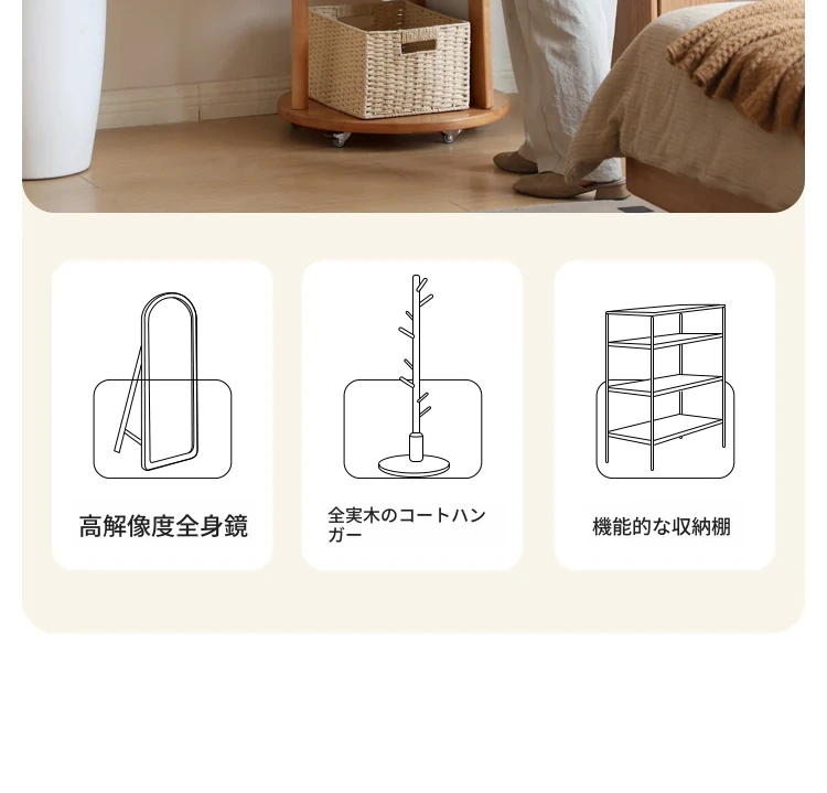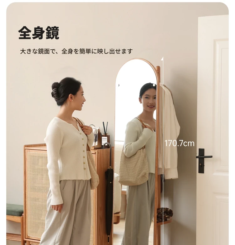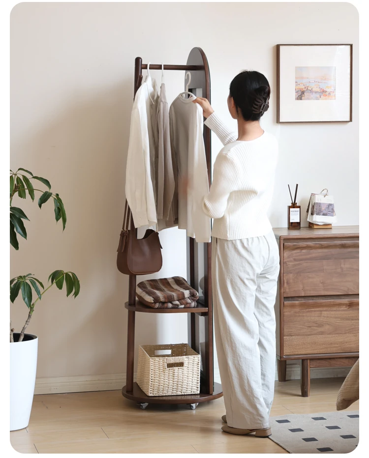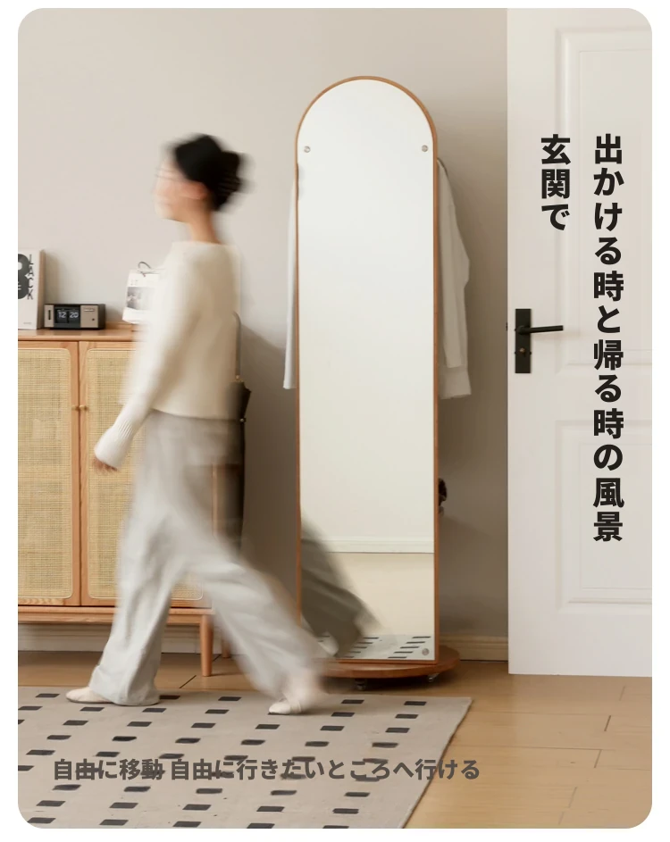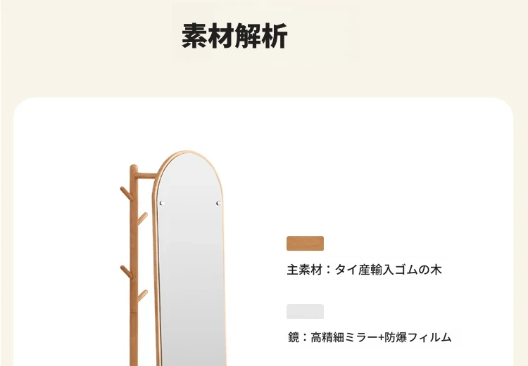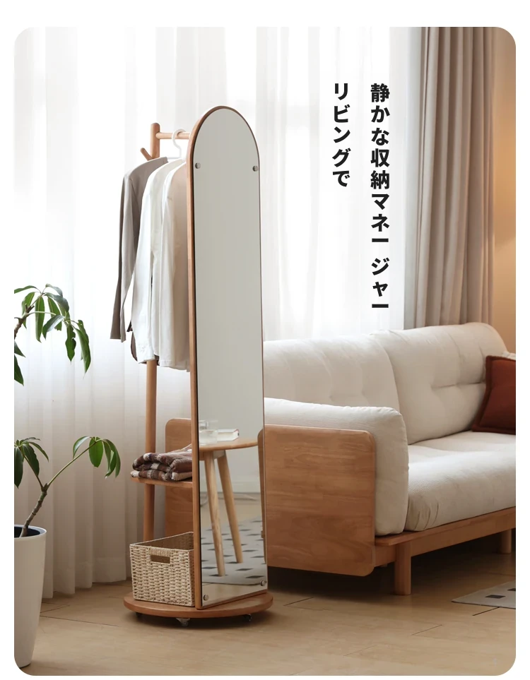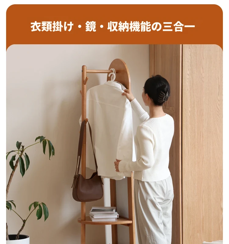 源氏木语×ヴィシャ実木製全身ミラー&コートラック一体型、移動可能な寝室用試着鏡!スタイリッシュで機能的、あなたの毎日を華やかに演出します!