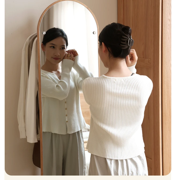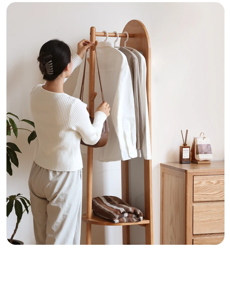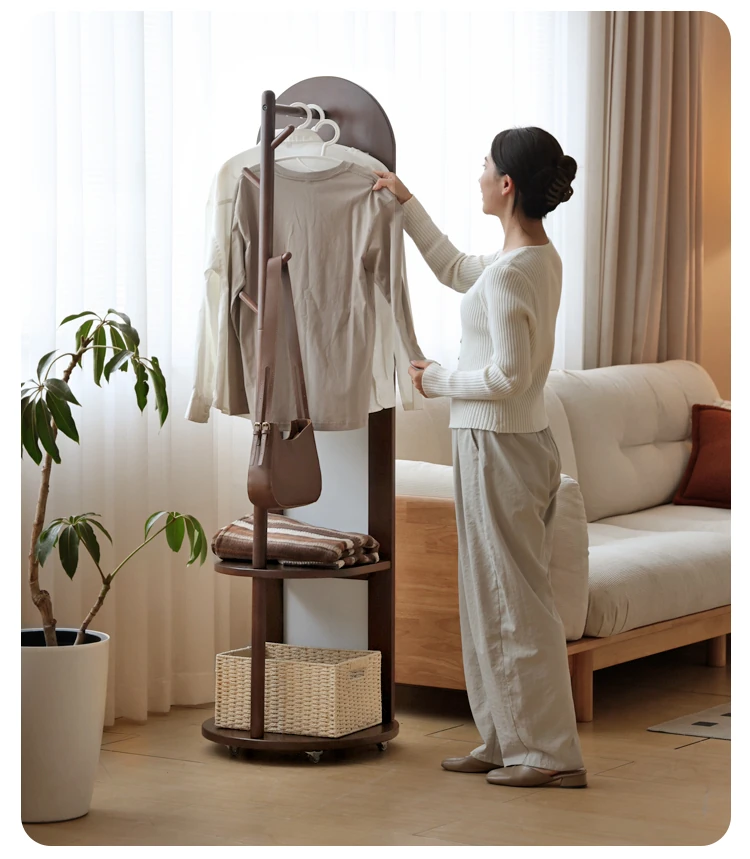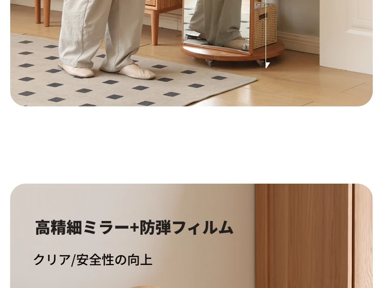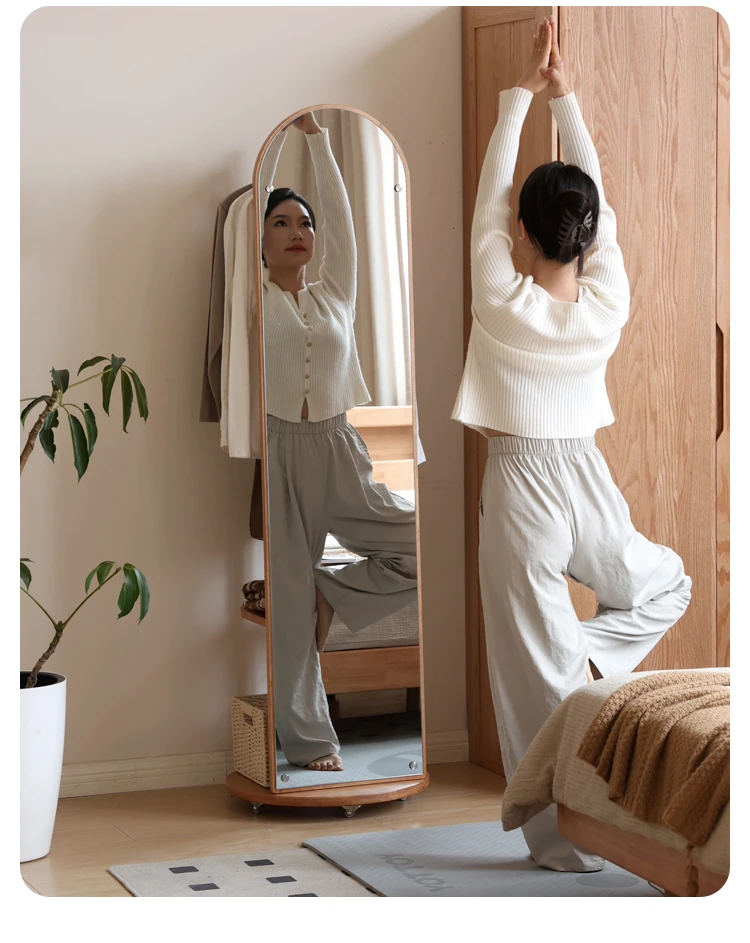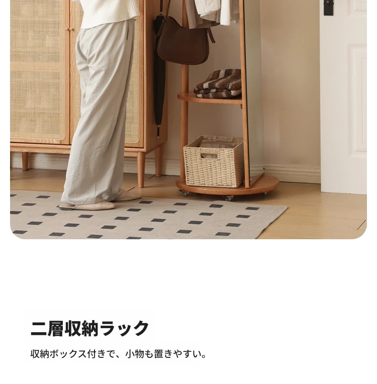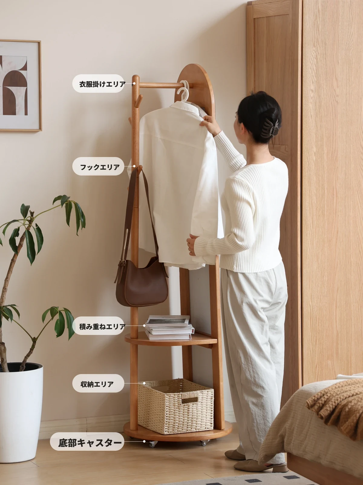 源氏木语×ヴィシャ実木製全身ミラー&コートラック一体型、移動可能な寝室用試着鏡!スタイリッシュで機能的、あなたの毎日を華やかに演出します!