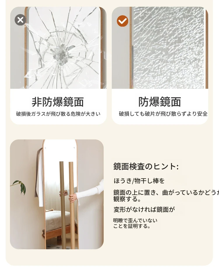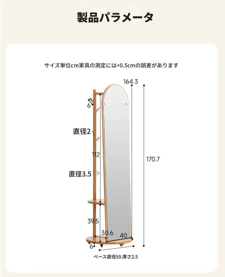 【ナチュラルウッド】全身鏡-0.5メートル(500*500*1707MM)