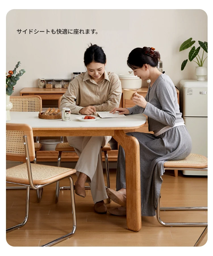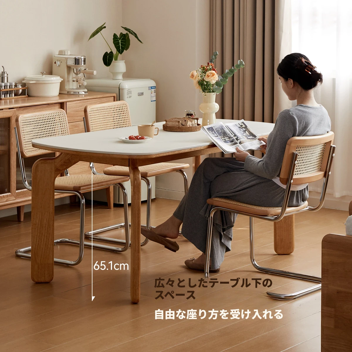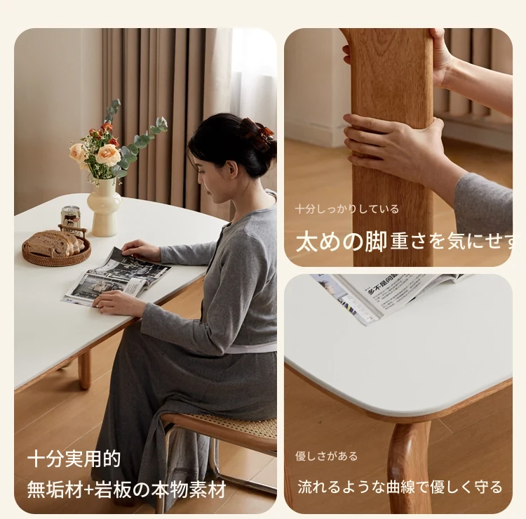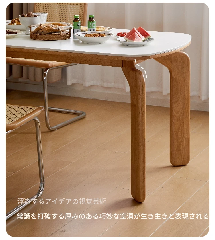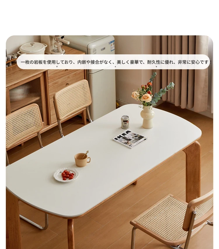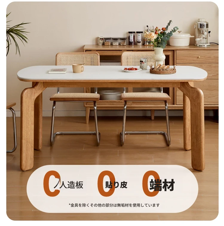 源氏木语×ヴィシャ実木ロックプレートダイニングテーブル|モダンでシンプルなデザインの食卓|家庭用や学習にも最適な多機能テーブル!