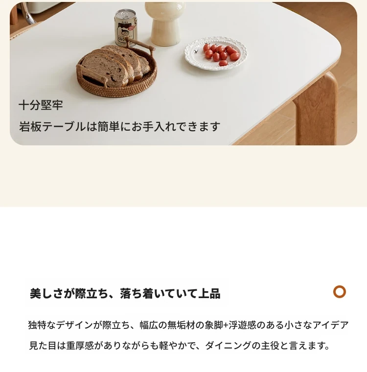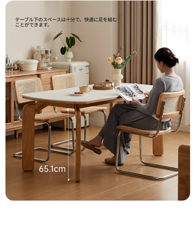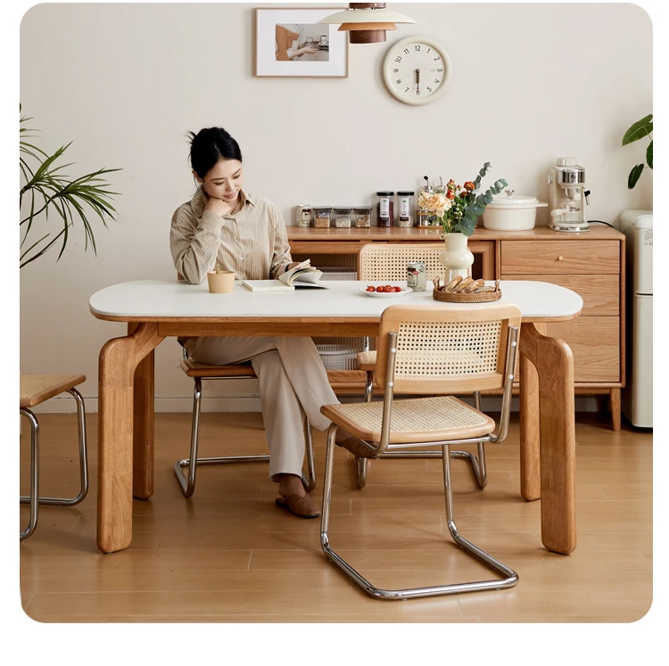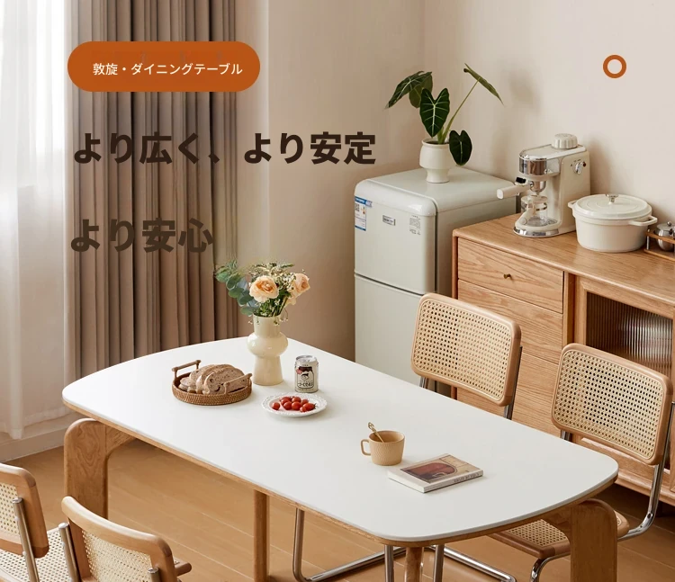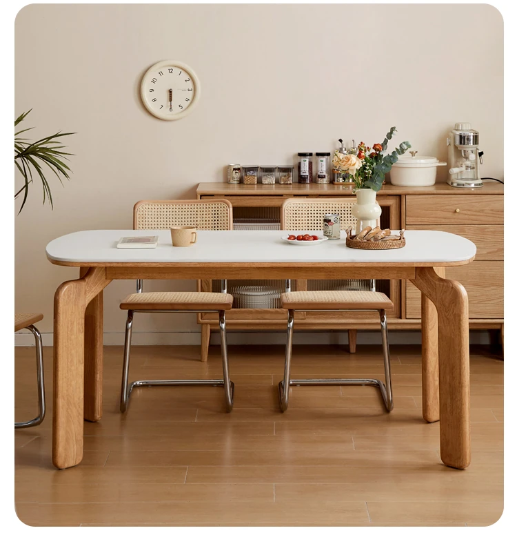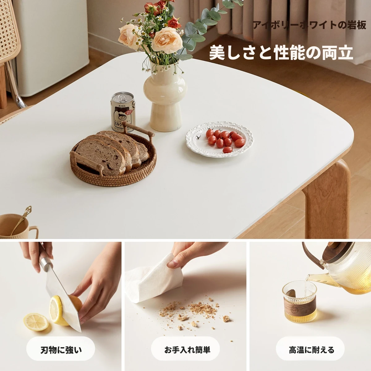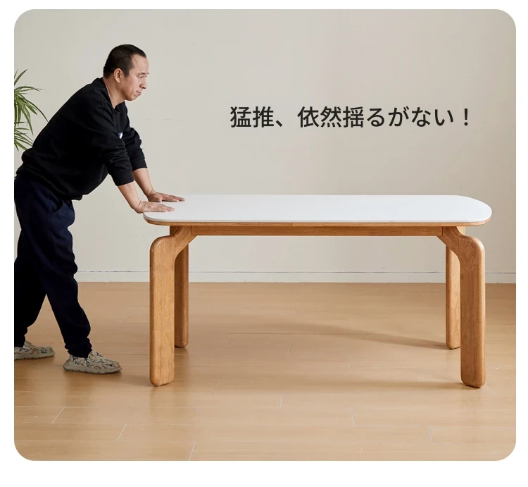 源氏木语×ヴィシャ実木ロックプレートダイニングテーブル|モダンでシンプルなデザインの食卓|家庭用や学習にも最適な多機能テーブル!
