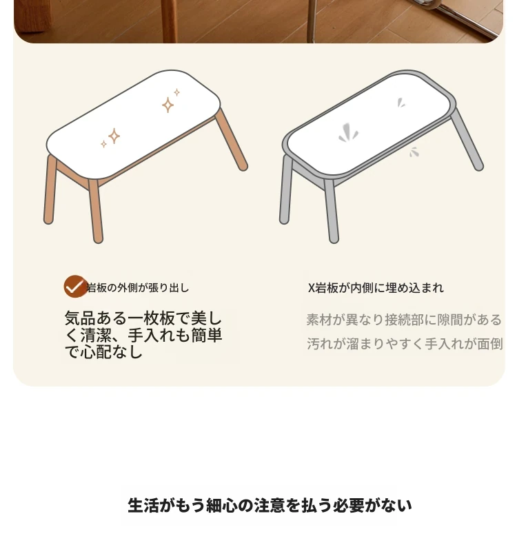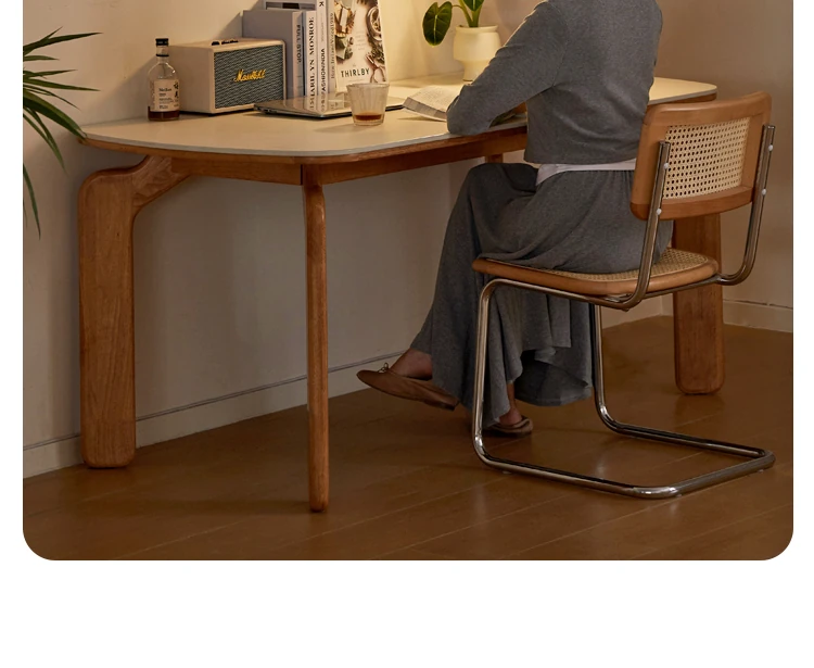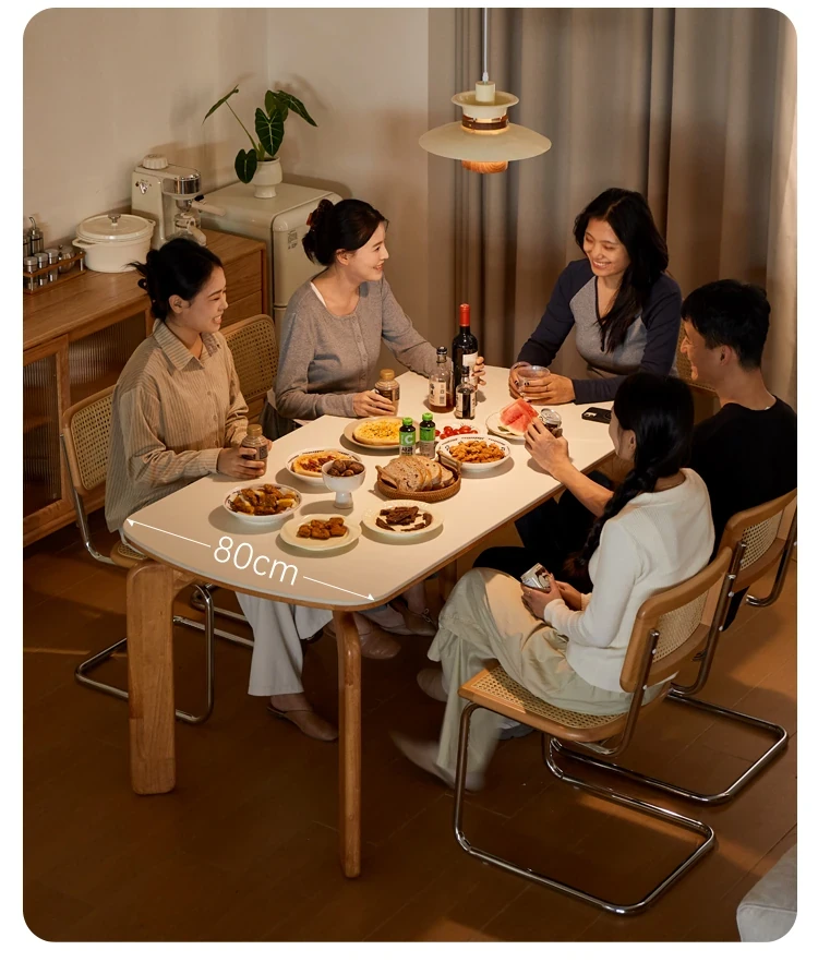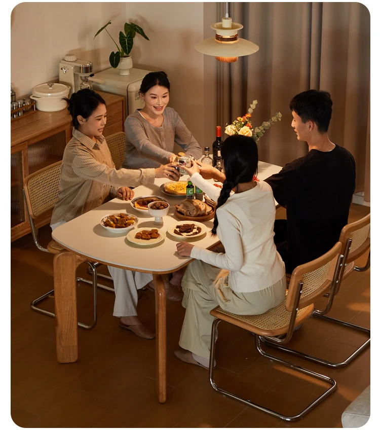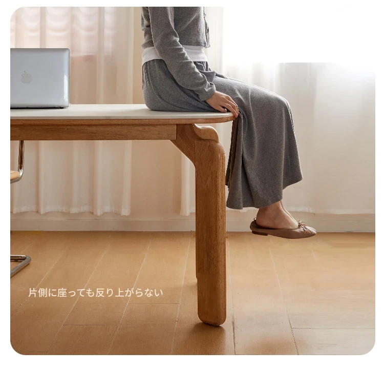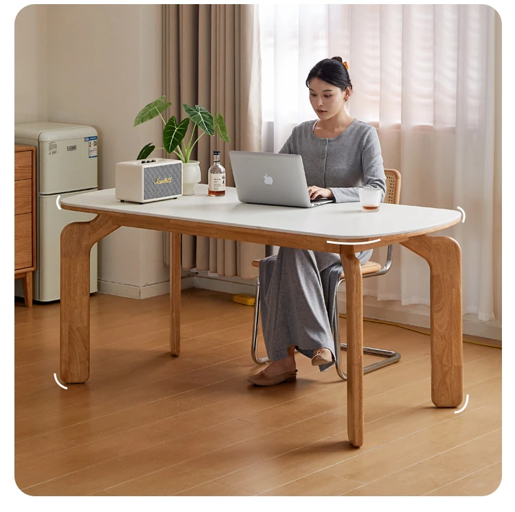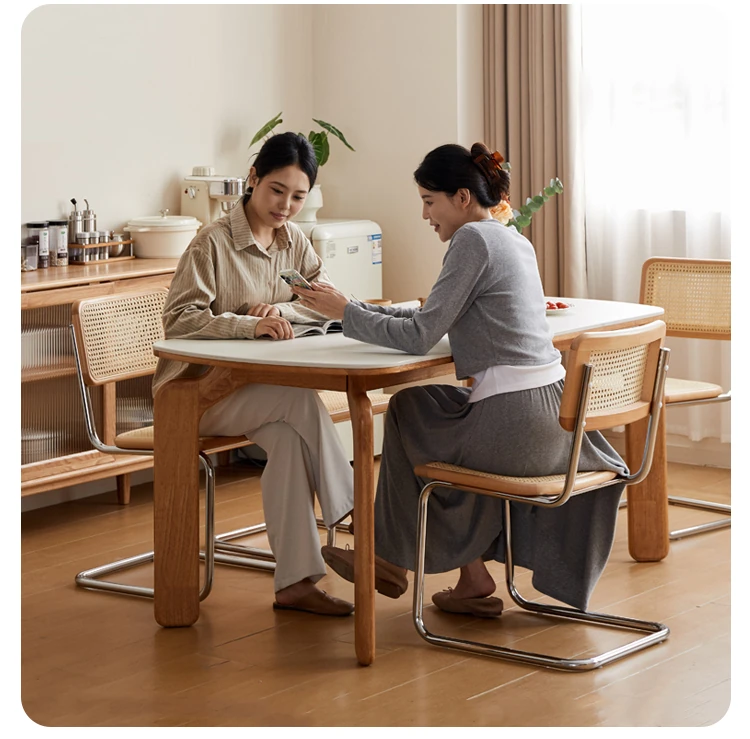 源氏木语×ヴィシャ実木ロックプレートダイニングテーブル|モダンでシンプルなデザインの食卓|家庭用や学習にも最適な多機能テーブル!
