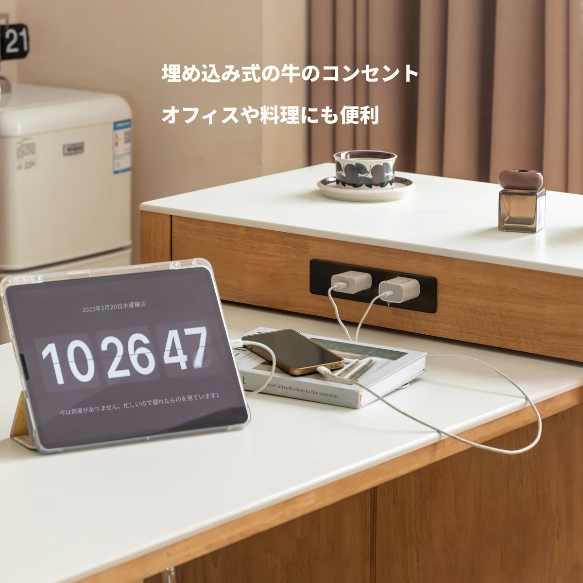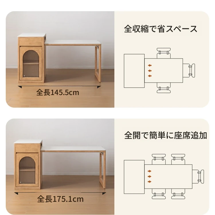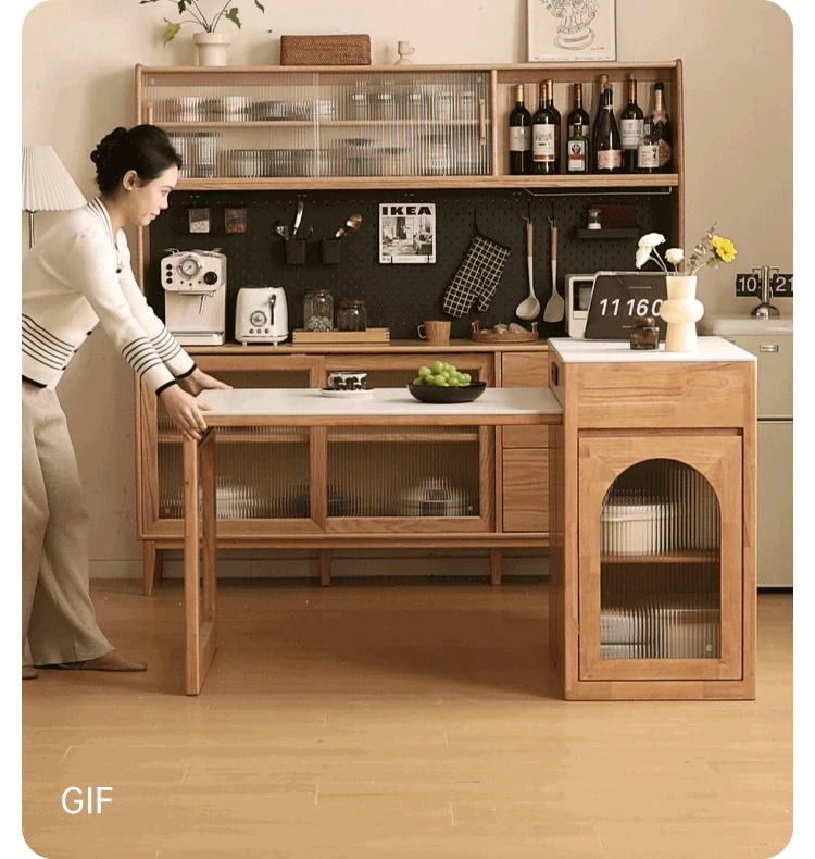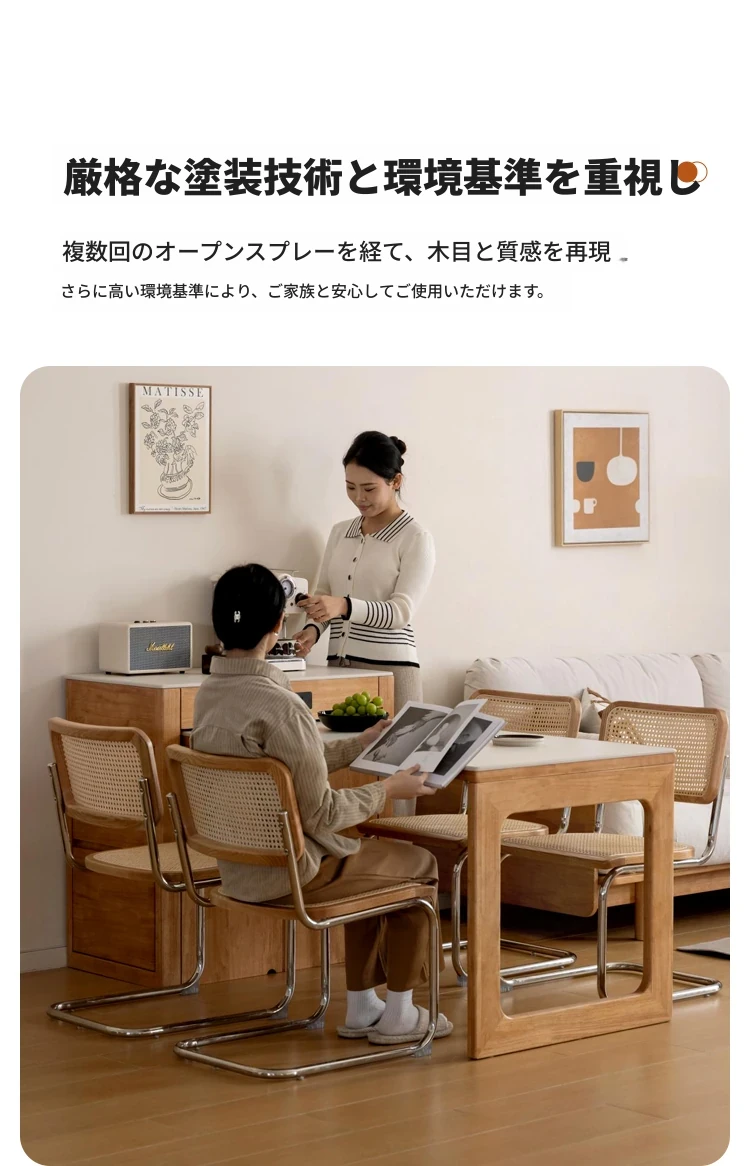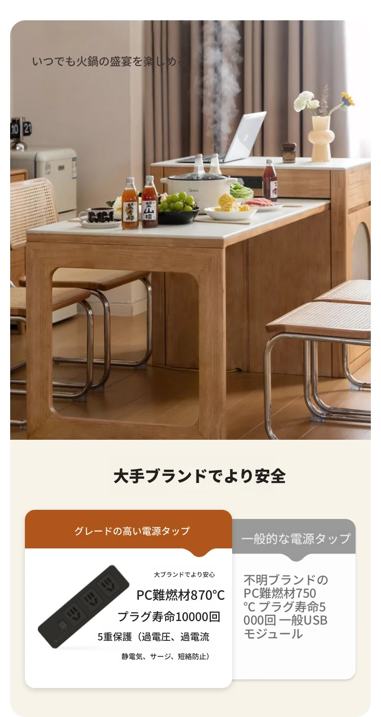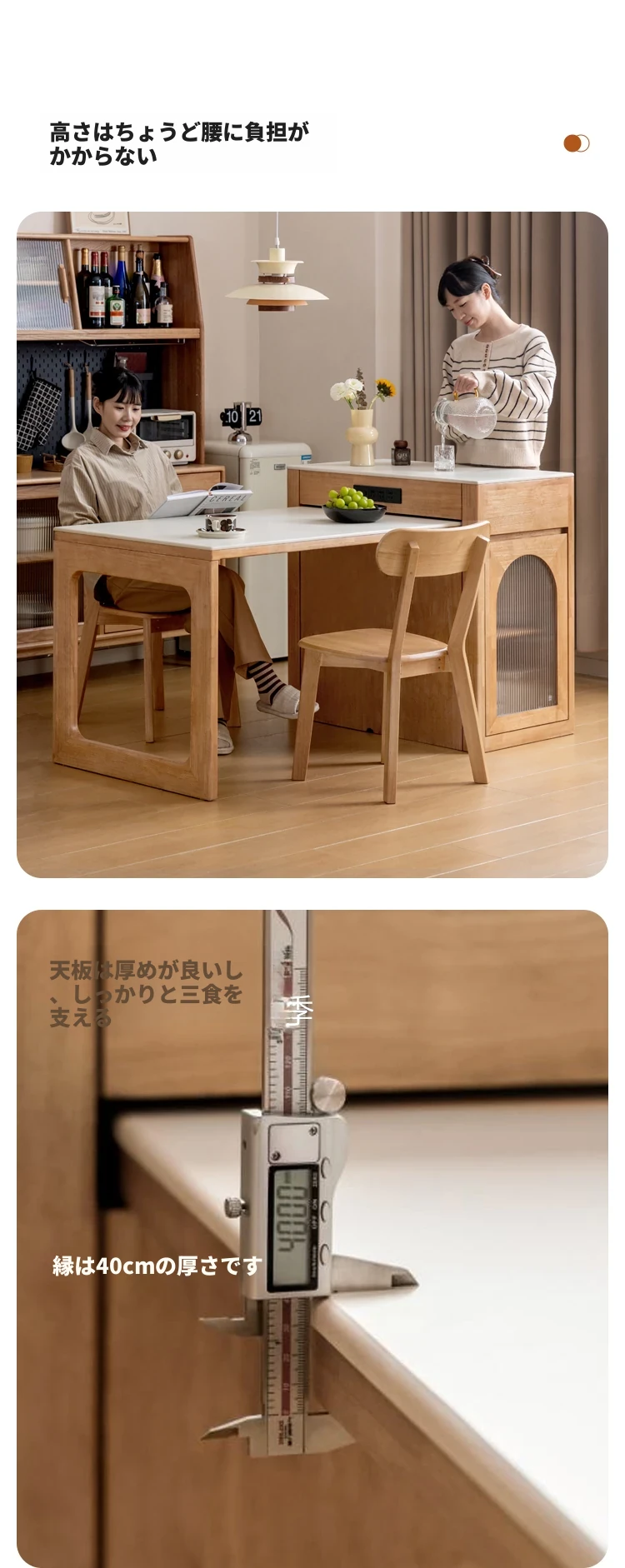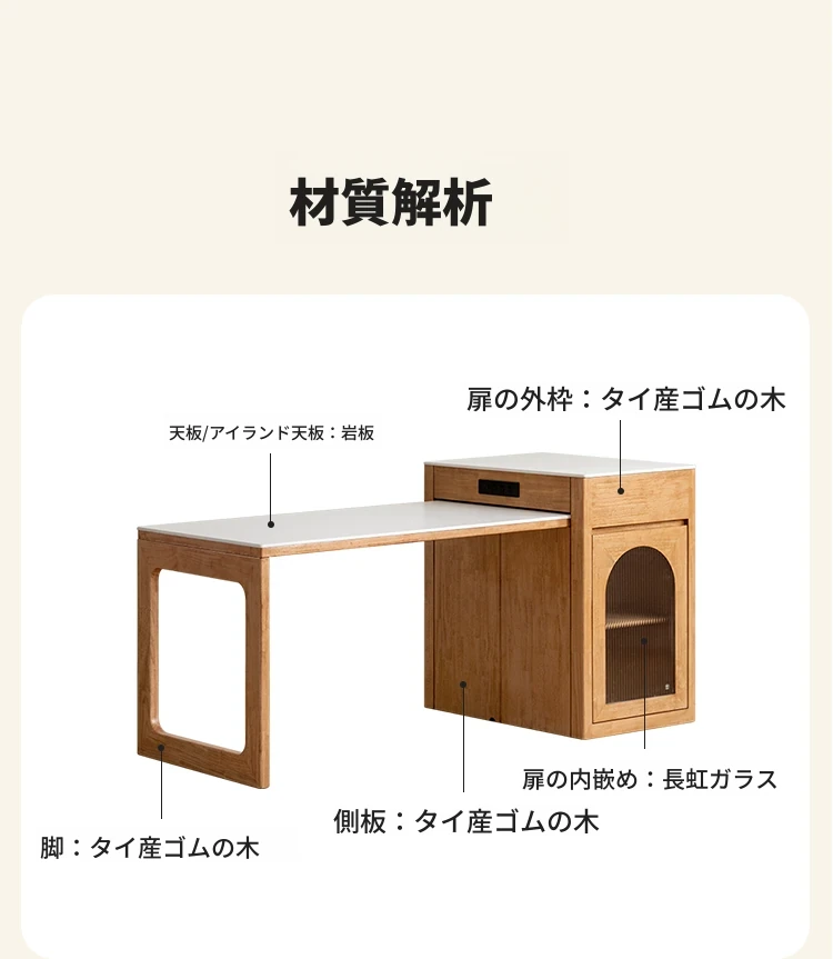 源氏木语×ヴィシャ実木アイランドテーブル|伸縮可能なダイニングテーブル|ナチュラルな木材と高級感ある岩板デザインで、家族団らんの時間をもっと特別に。
