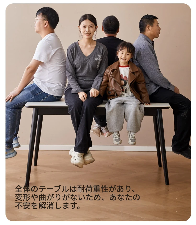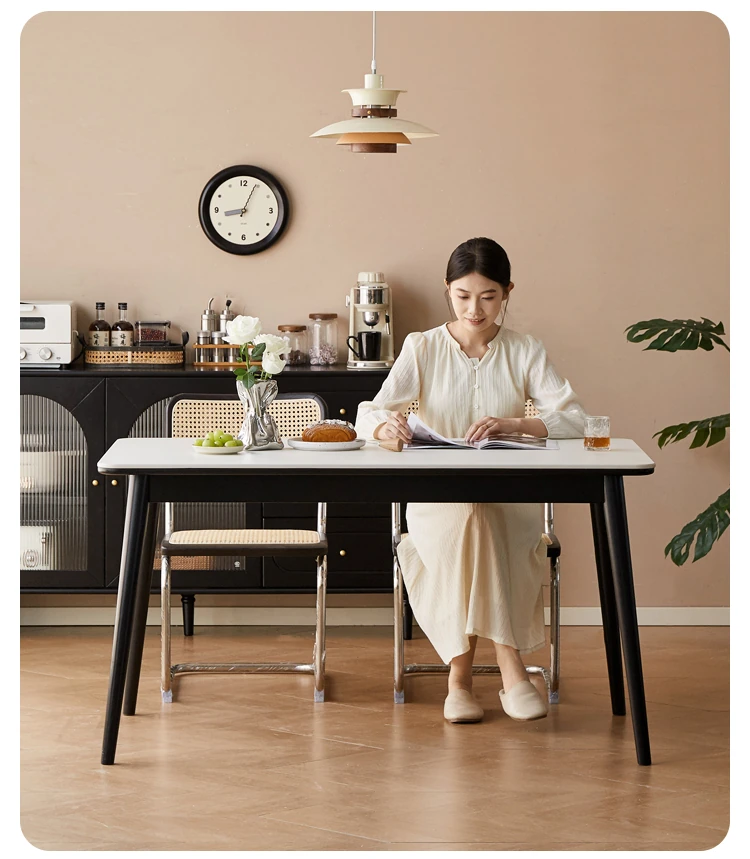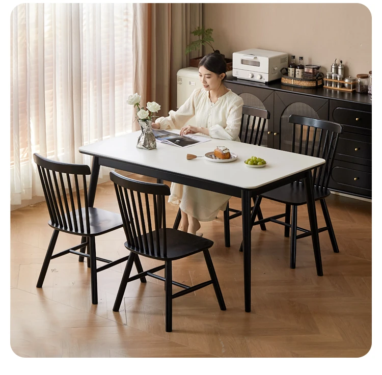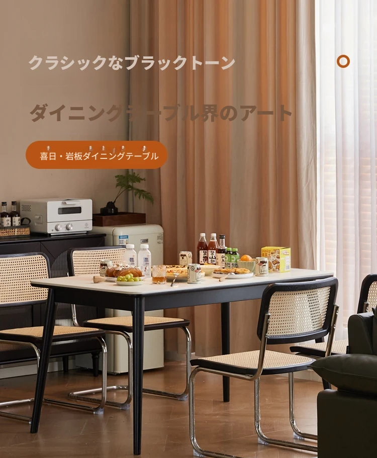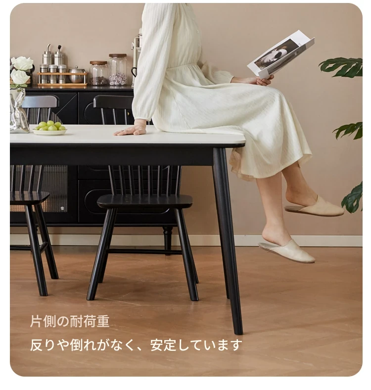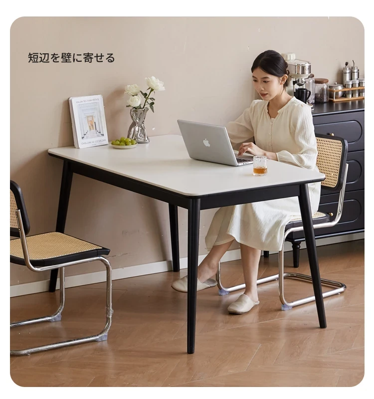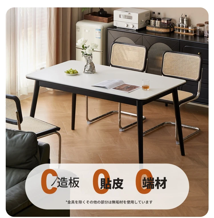 源氏木语×ウィッサ 高級無垢材ダイニングテーブル レトロなブラックスラブデザイン 長方形 家庭用 食事に最適!おしゃれで機能的なインテリアにぴったり!