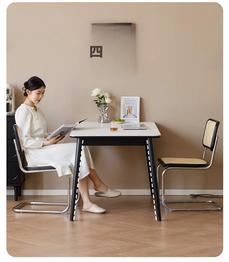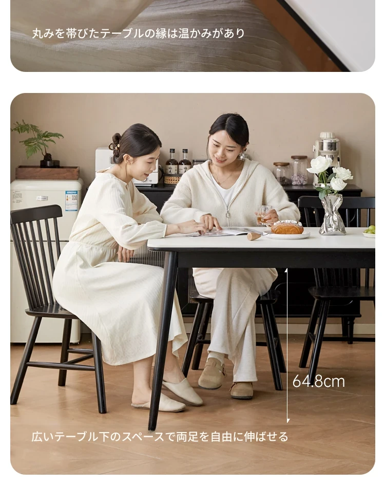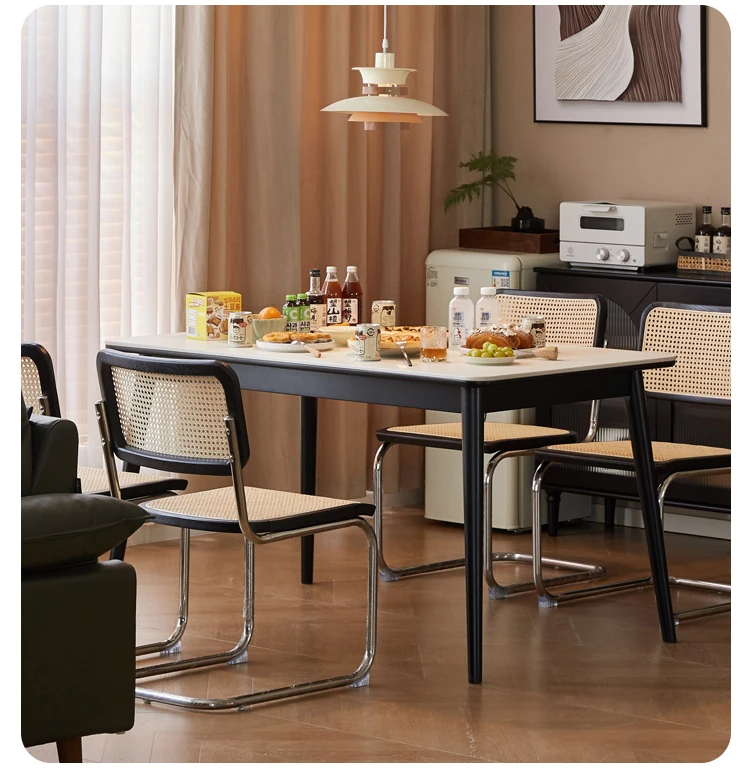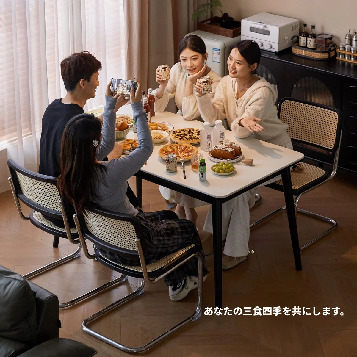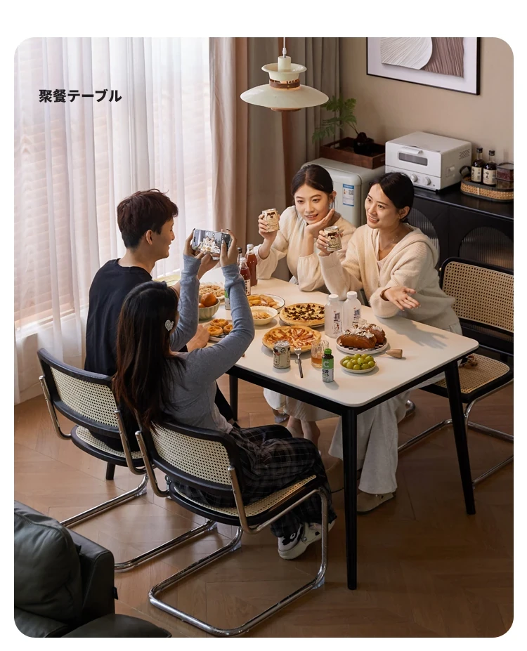 源氏木语×ウィッサ 高級無垢材ダイニングテーブル レトロなブラックスラブデザイン 長方形 家庭用 食事に最適!おしゃれで機能的なインテリアにぴったり!