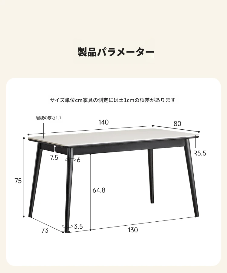 1.4メートル岩板テーブル(アイボリーホワイト)(1400*800*750MM)