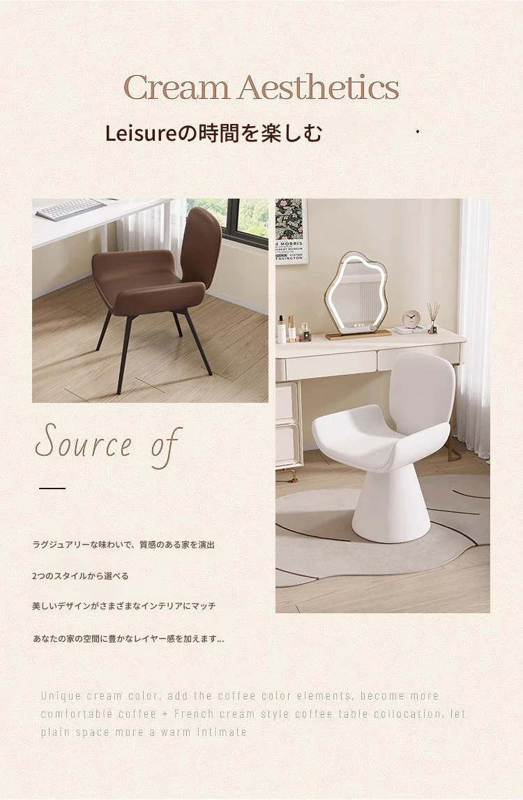高級感漂う主寝室用メイクアップチェア!クリーム風デザインの化粧台用椅子、女性のための快適な背もたれ付きネイルスツール。あなたの特別な空間を演出します!