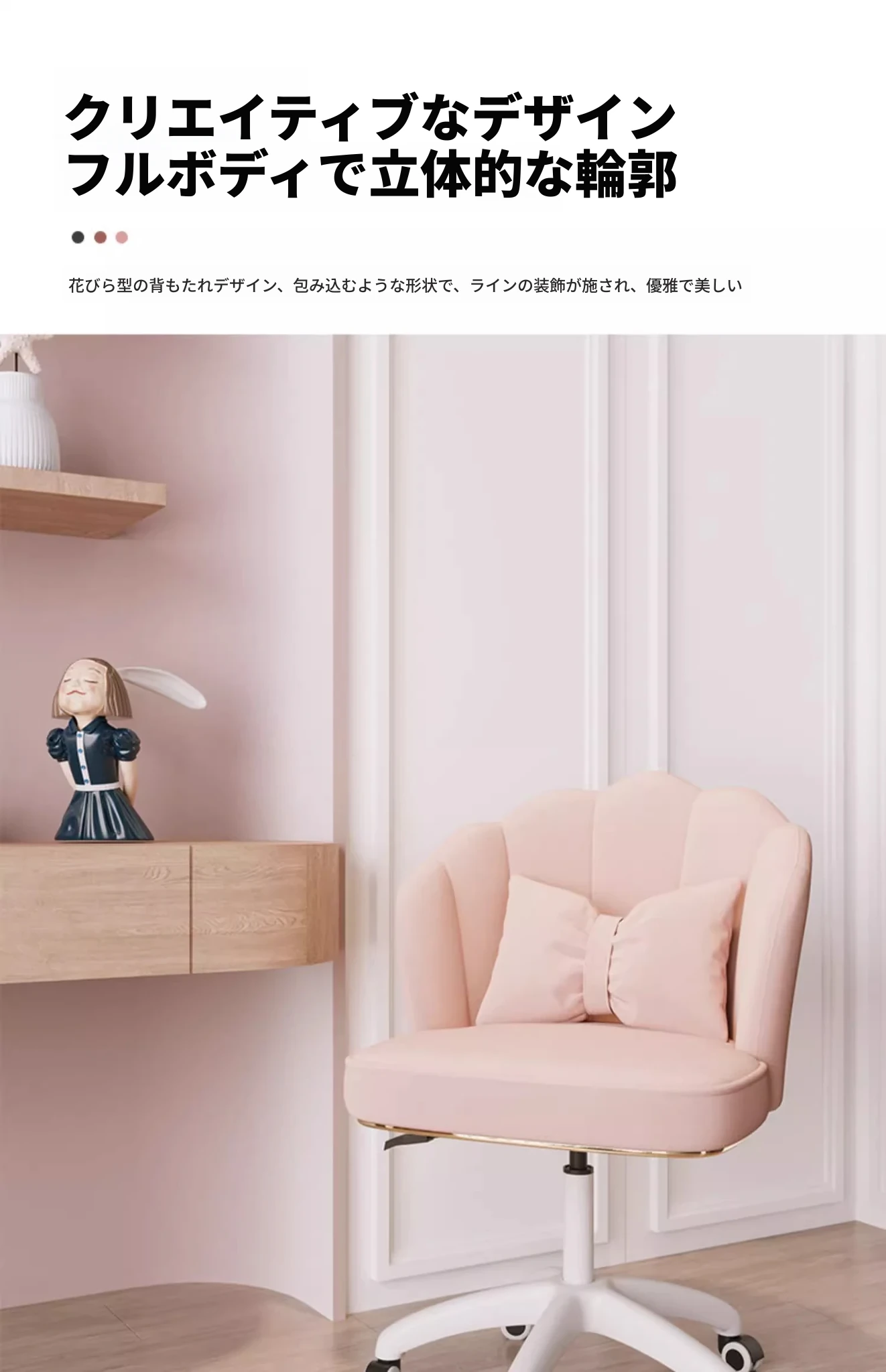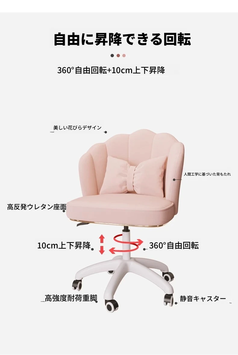 女性向けの豪華な化粧台椅子、主寝室にぴったりの回転式花びらデザイン!おしゃれで高級感あふれるネイルチェアで、毎日のメイクアップがもっと楽しくなる!