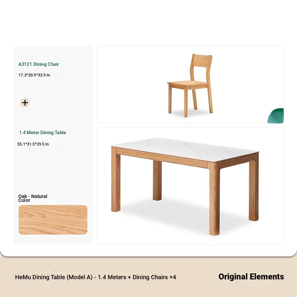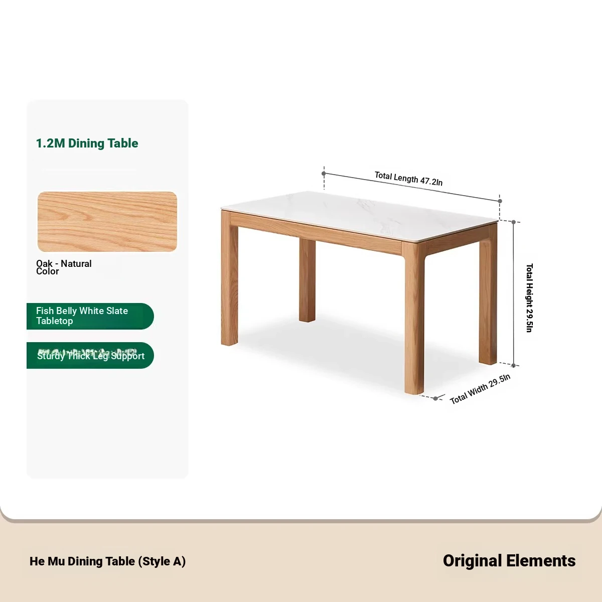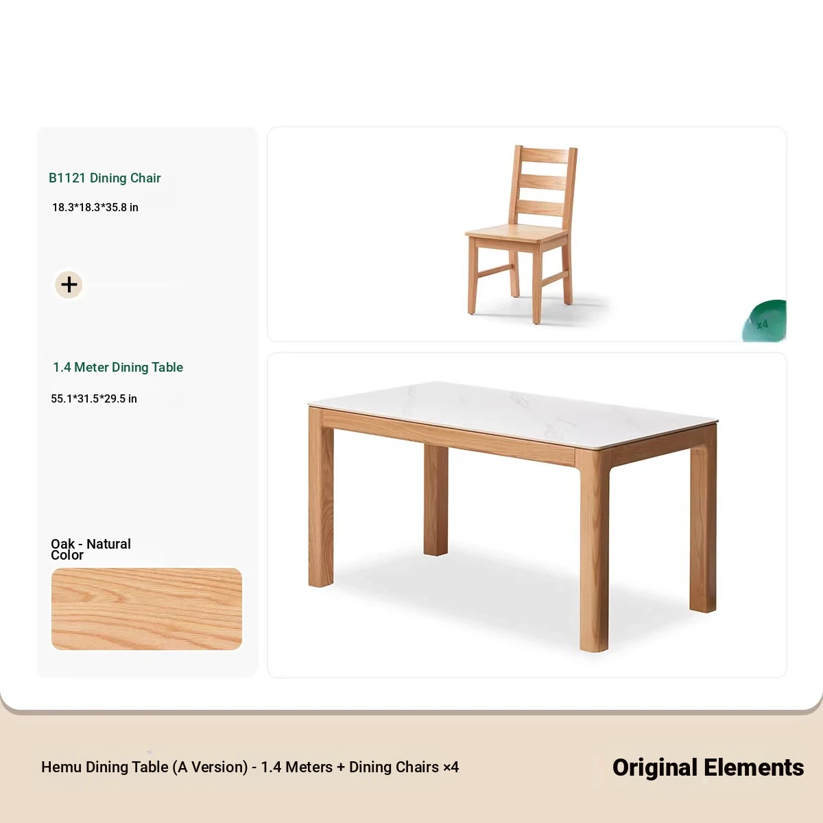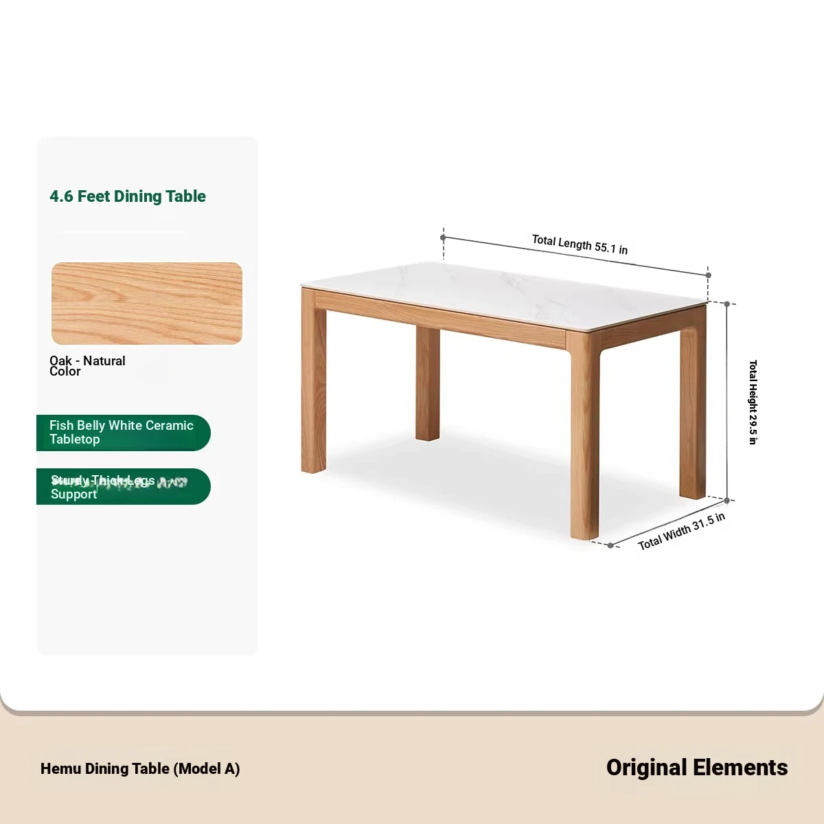 Minimalist Solid Wood Dining Table - Original Element Oak Rectangular Table Set for Small Spaces, Perfect for Home Dining