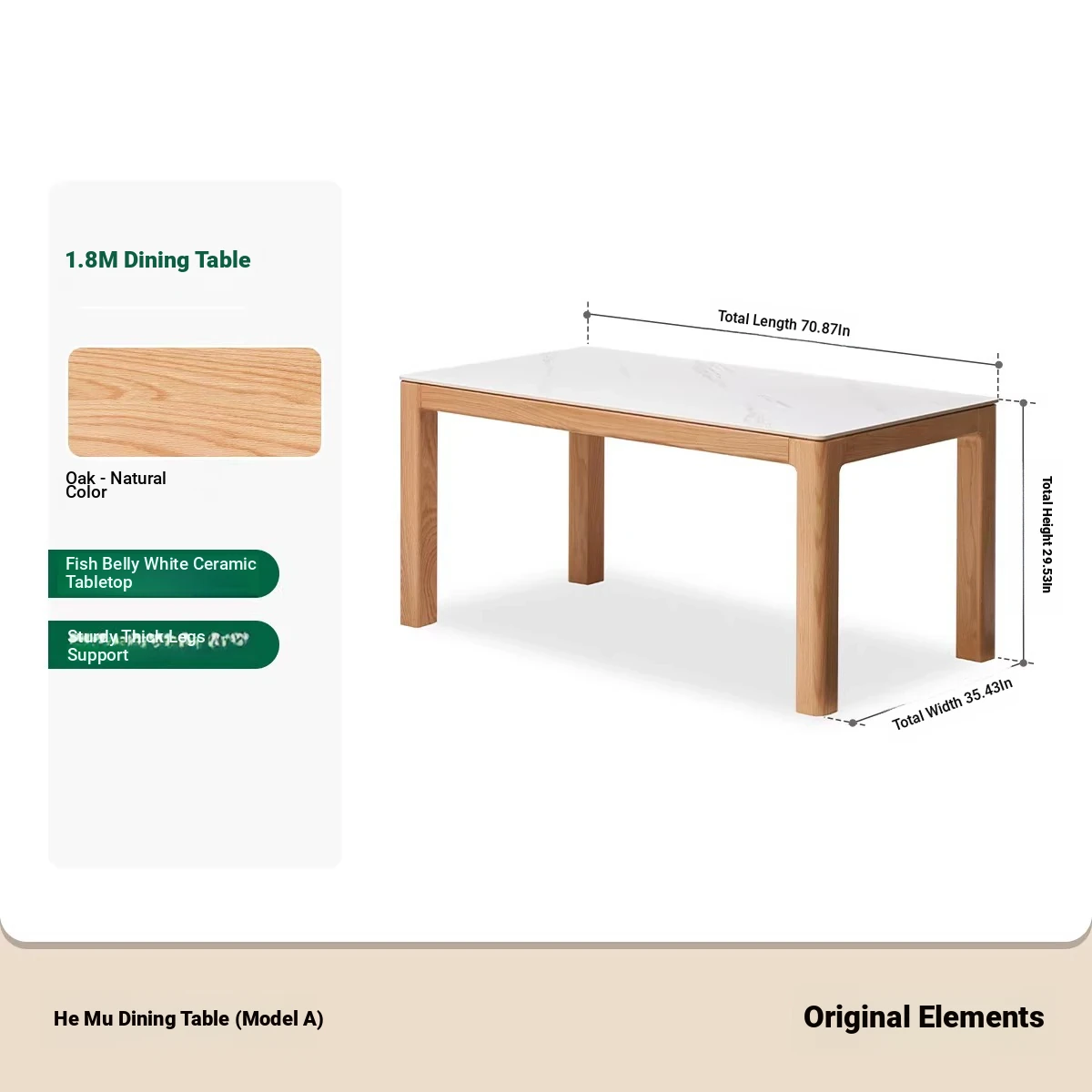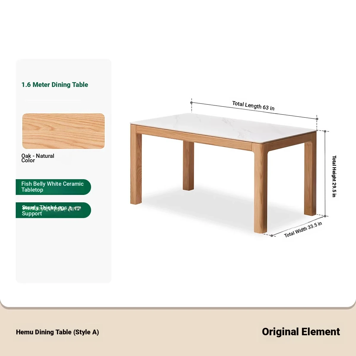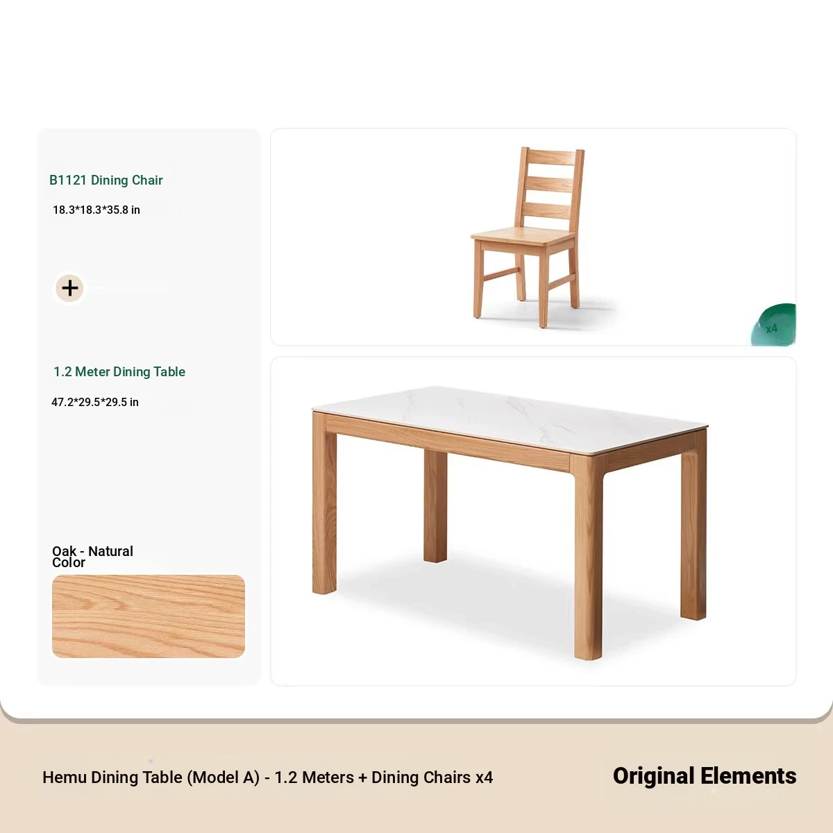 Minimalist Solid Wood Dining Table - Original Element Oak Rectangular Table Set for Small Spaces, Perfect for Home Dining