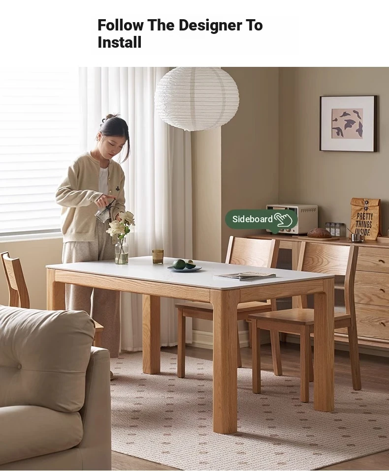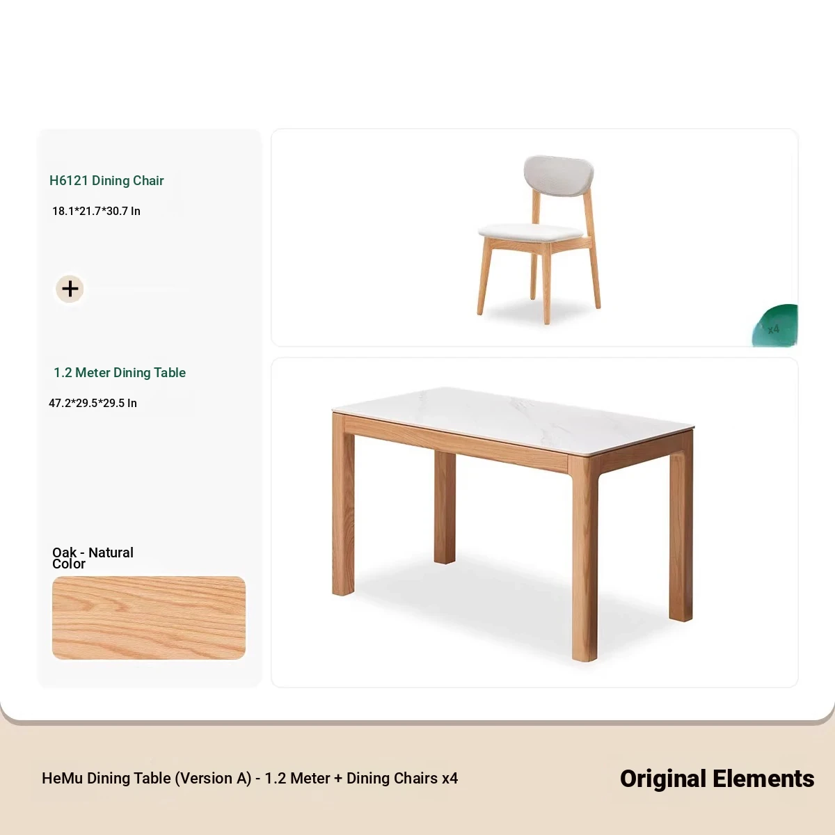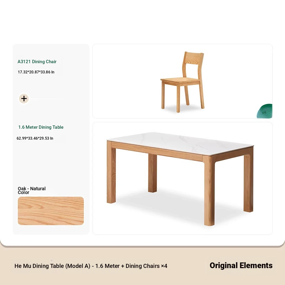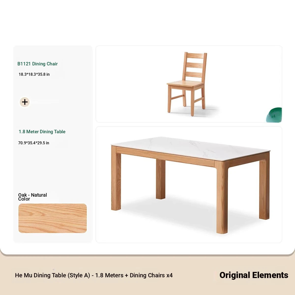 Minimalist Solid Wood Dining Table - Original Element Oak Rectangular Table Set for Small Spaces, Perfect for Home Dining