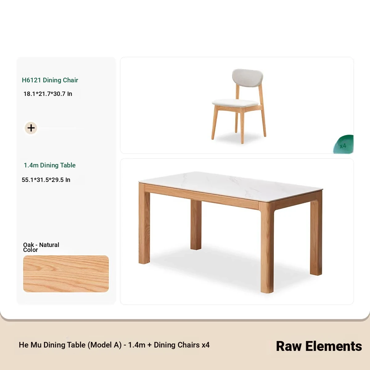 [Oak-Log Color] 55.12 in Rock Plate Dining Table + Rhine Dining Chair (B Square Leg)(H6122)