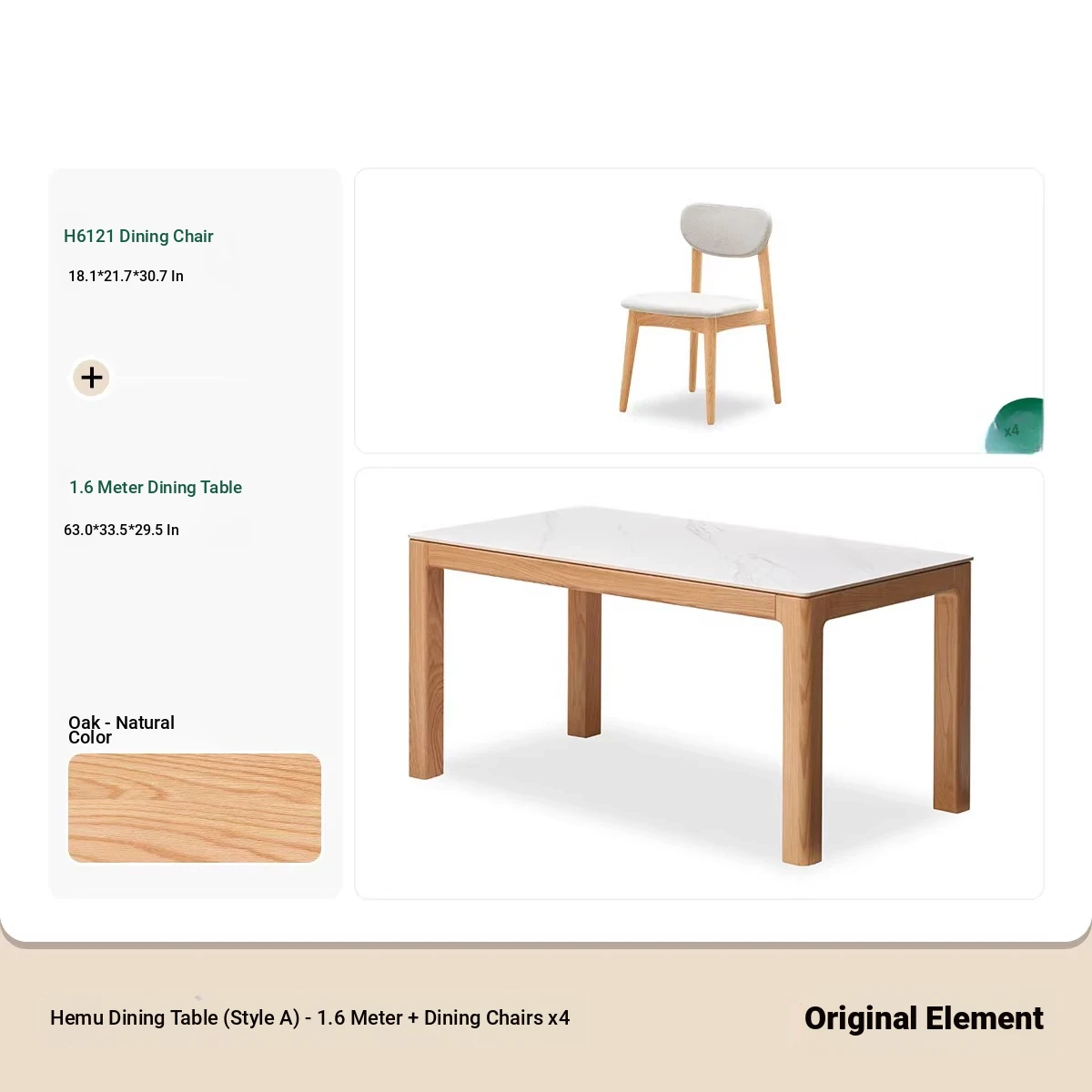 [Oak-Log Color] 47.24 in Rock Plate Dining Table + Rhine Dining Chair (B Square Leg)(H6122)