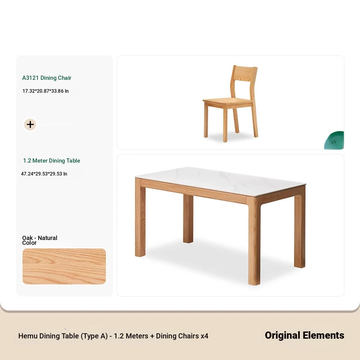 [Oak-Log Color] 47.24 in Rock Plate Dining Table + Tevic Dining Chair * 4(B1121)