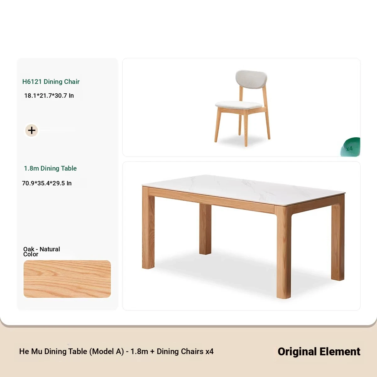 [Oak-Log Color] 70.87 in Rock Plate Dining Table + Rhine Dining Chair (B Square Leg)(H6122)