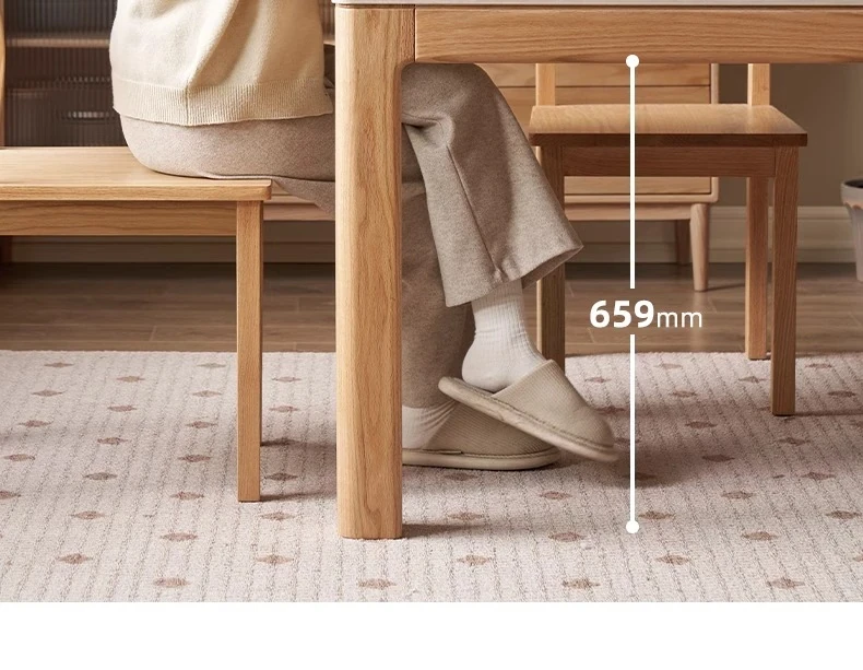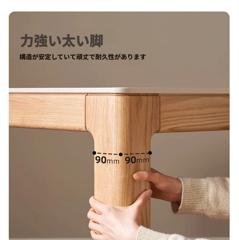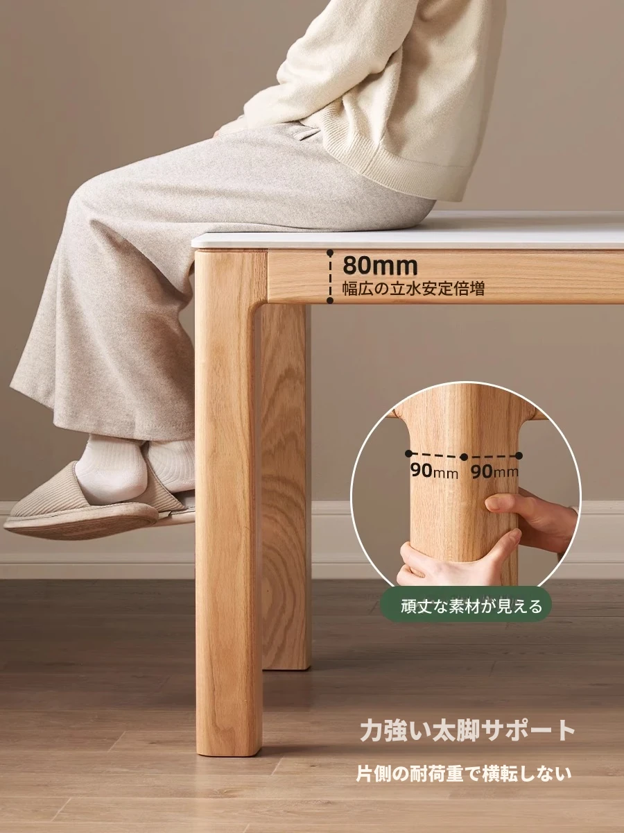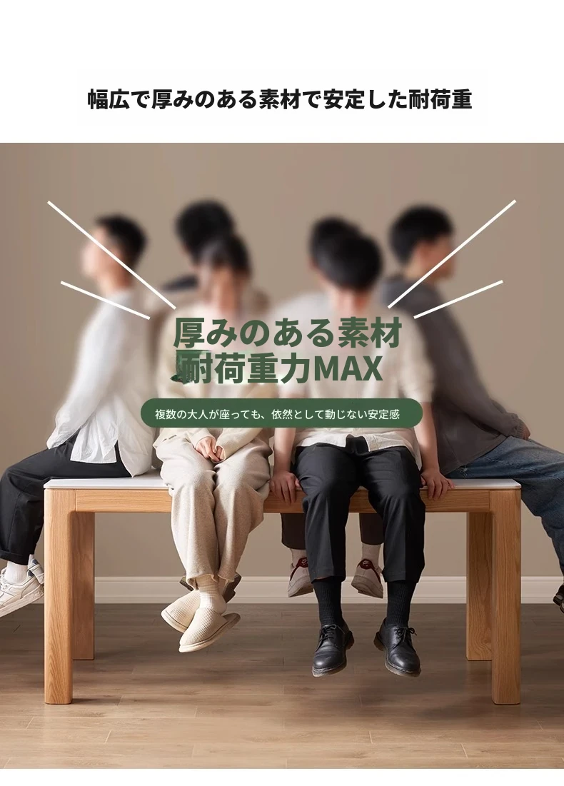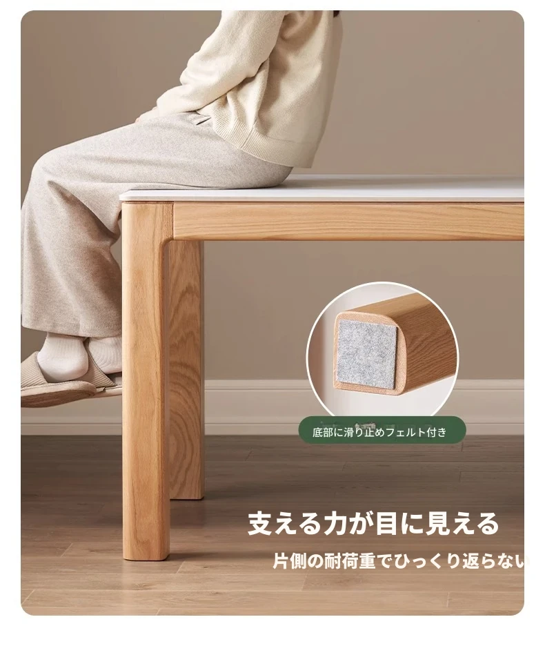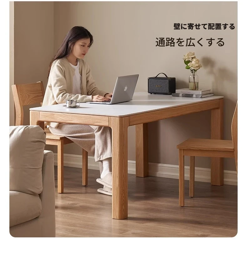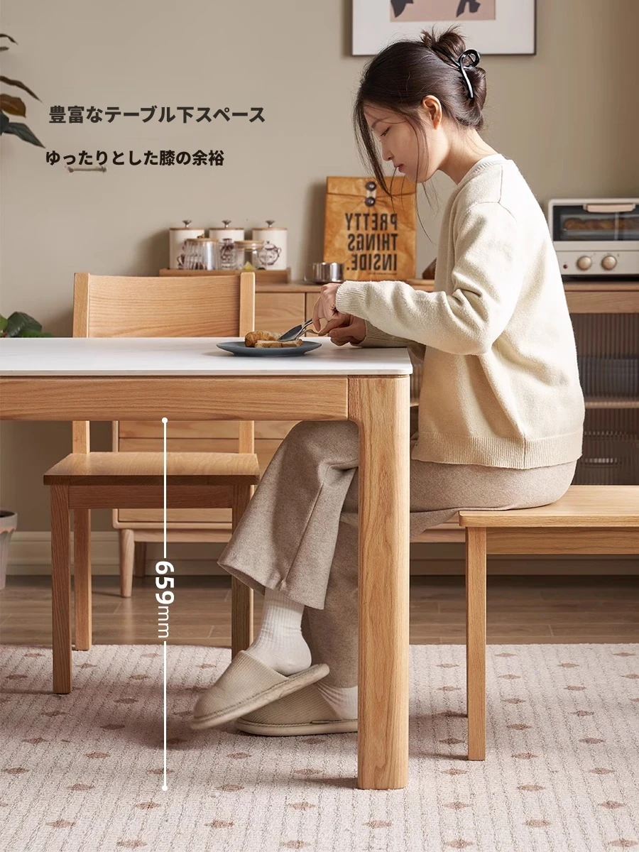原木素材のシンプルなオーク製ロングテーブル - 小スペースに最適なダイニングセット!快適な食事時間を提供する、スタイリッシュで実用的なデザイン。
