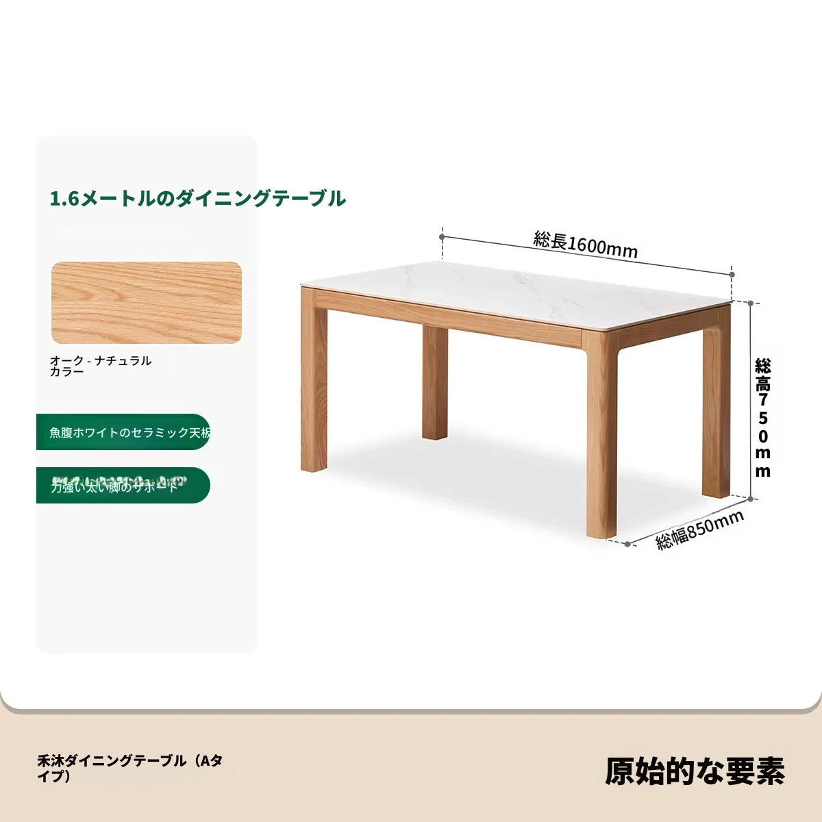【オーク-ナチュラル】1.6メートルダイニングテーブル(1600*850*750mm)
