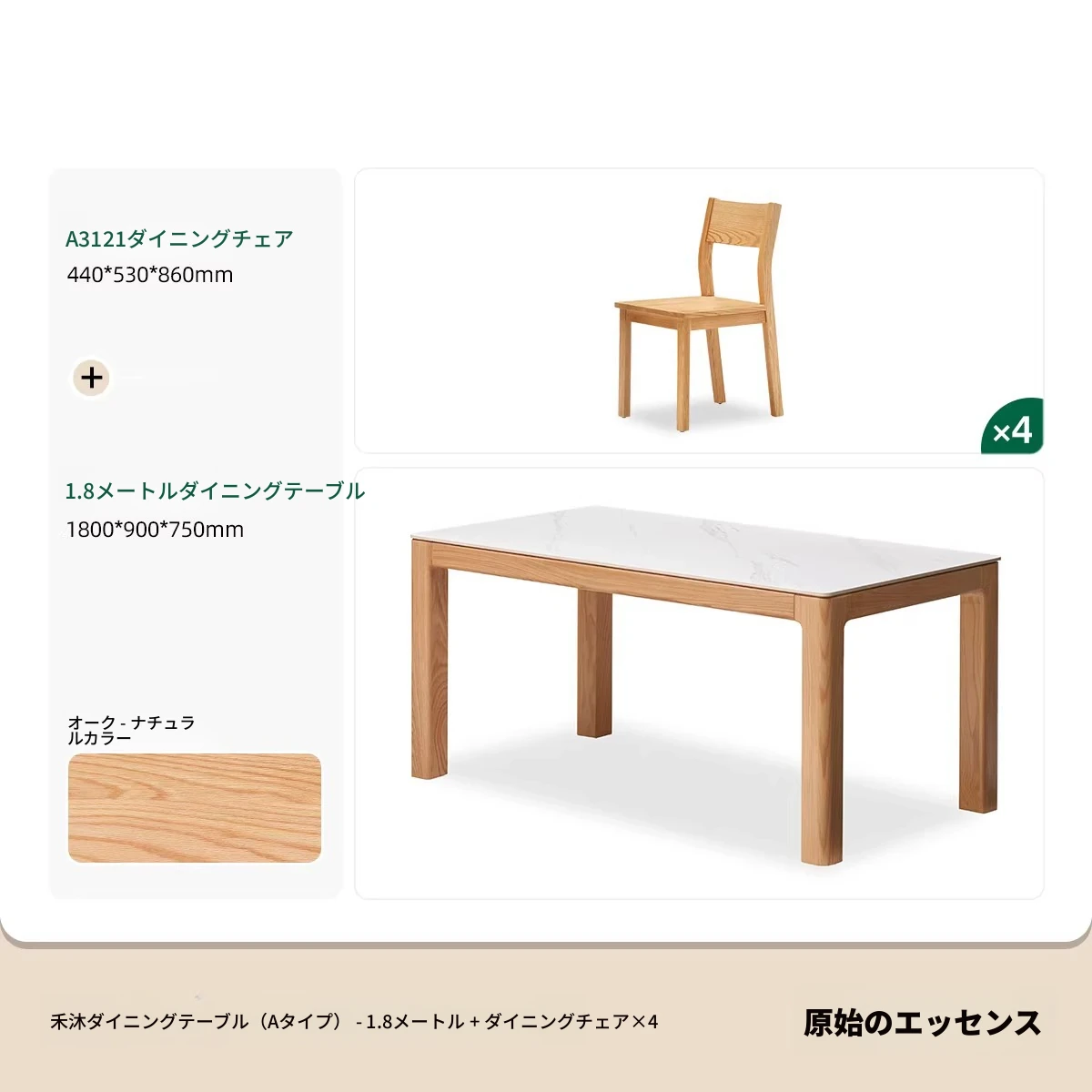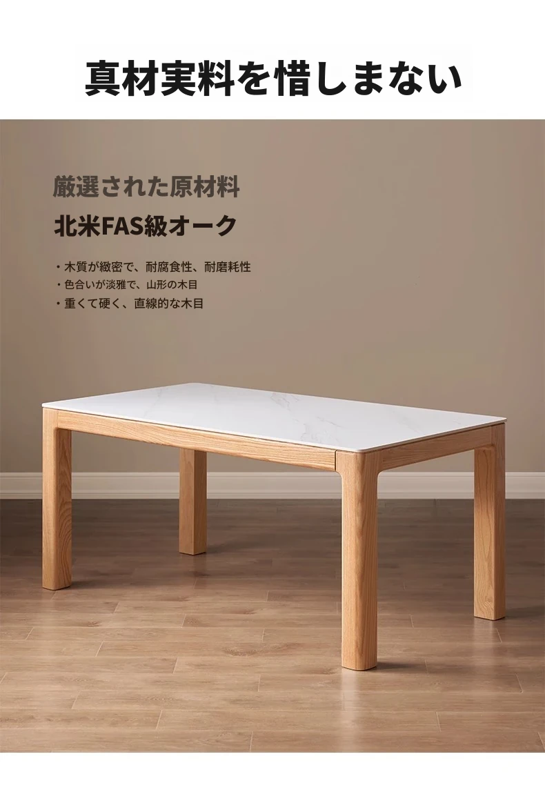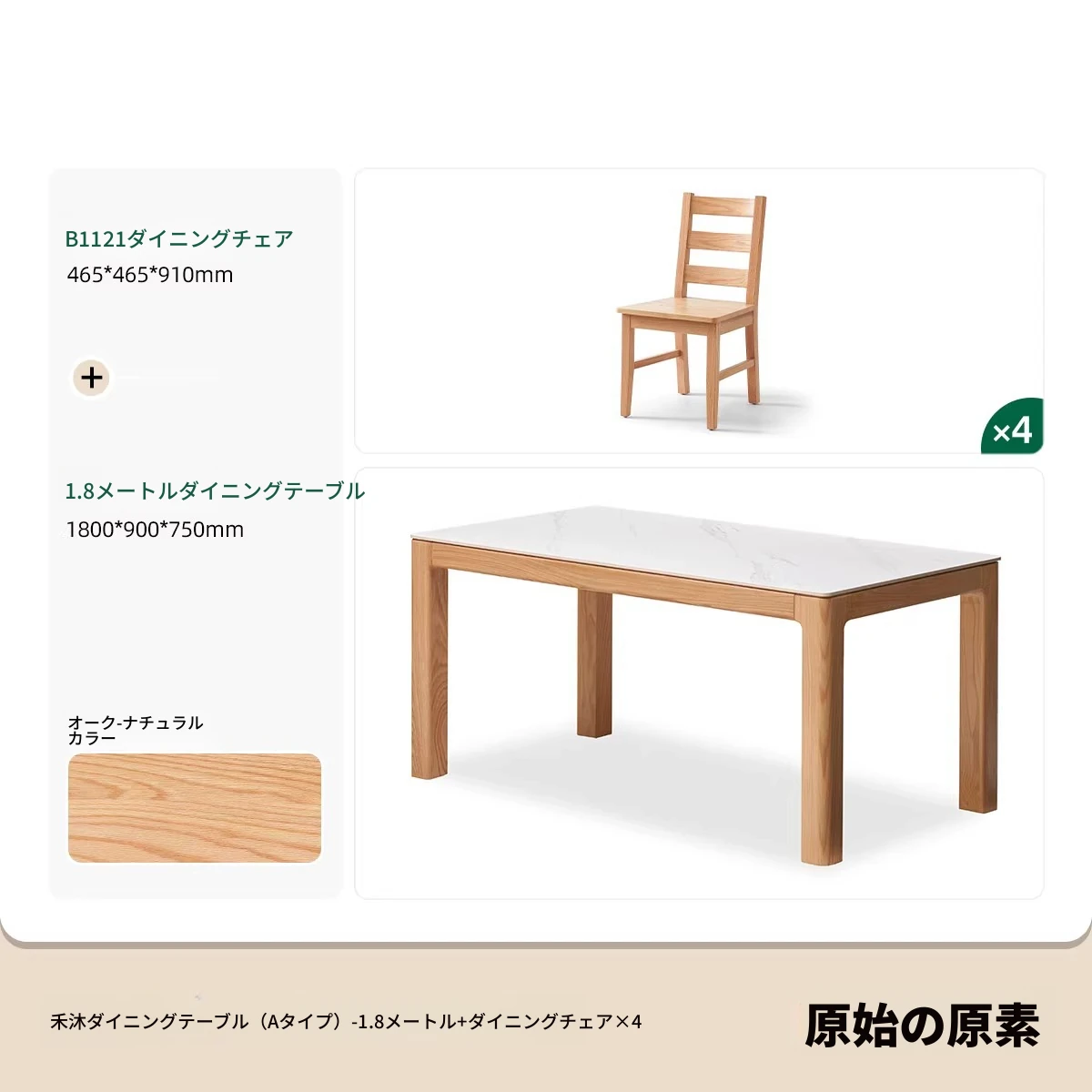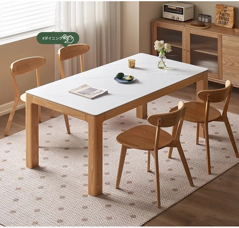 【オーク-ナチュラル】1.8メートル岩板ダイニングテーブル+テヴェクダイニングチェア*4(B1121)