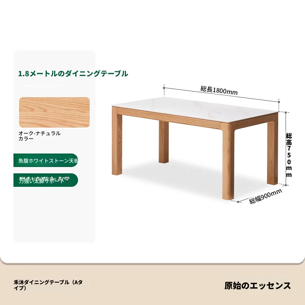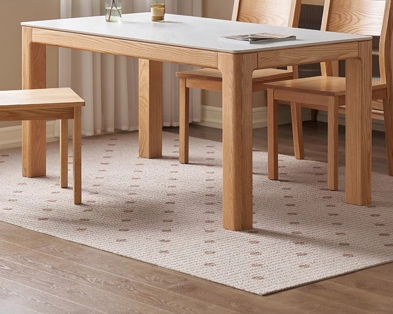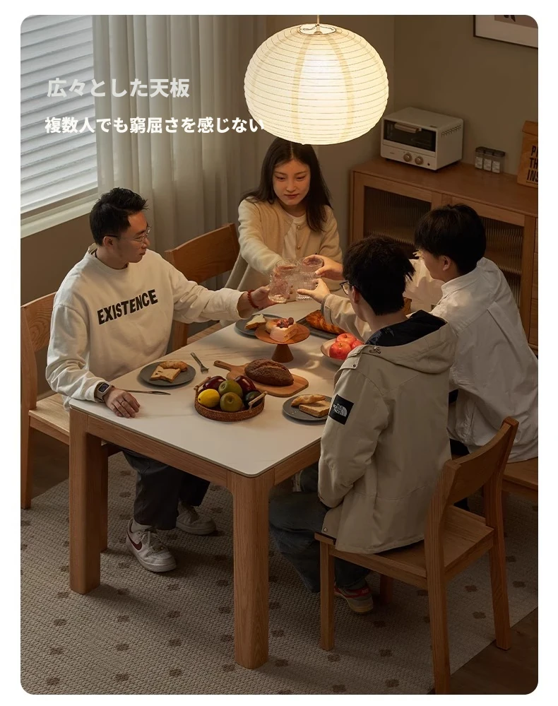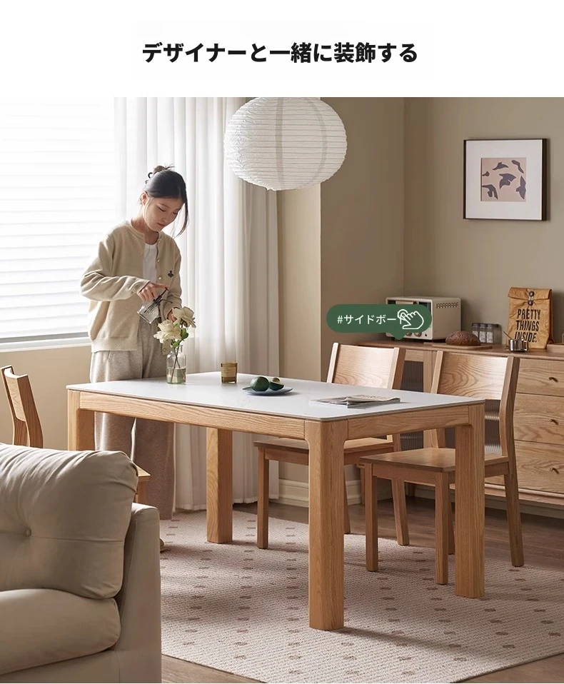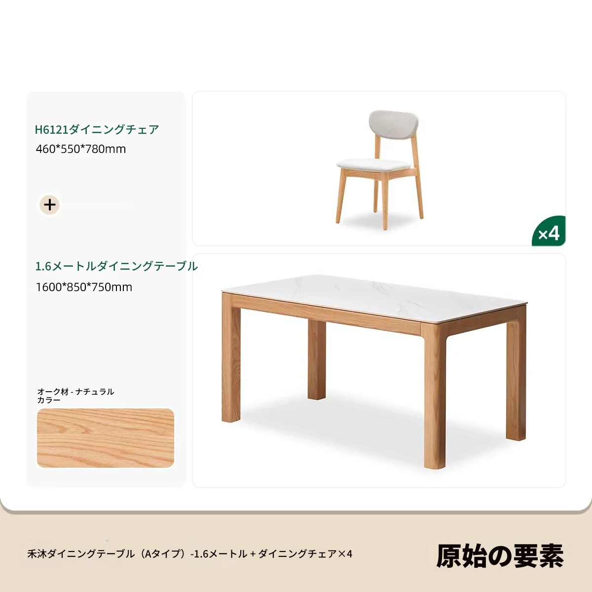 【オーク-ナチュラル】1.8メートル岩板ダイニングテーブル+テヴェクダイニングチェア*4(B1121)