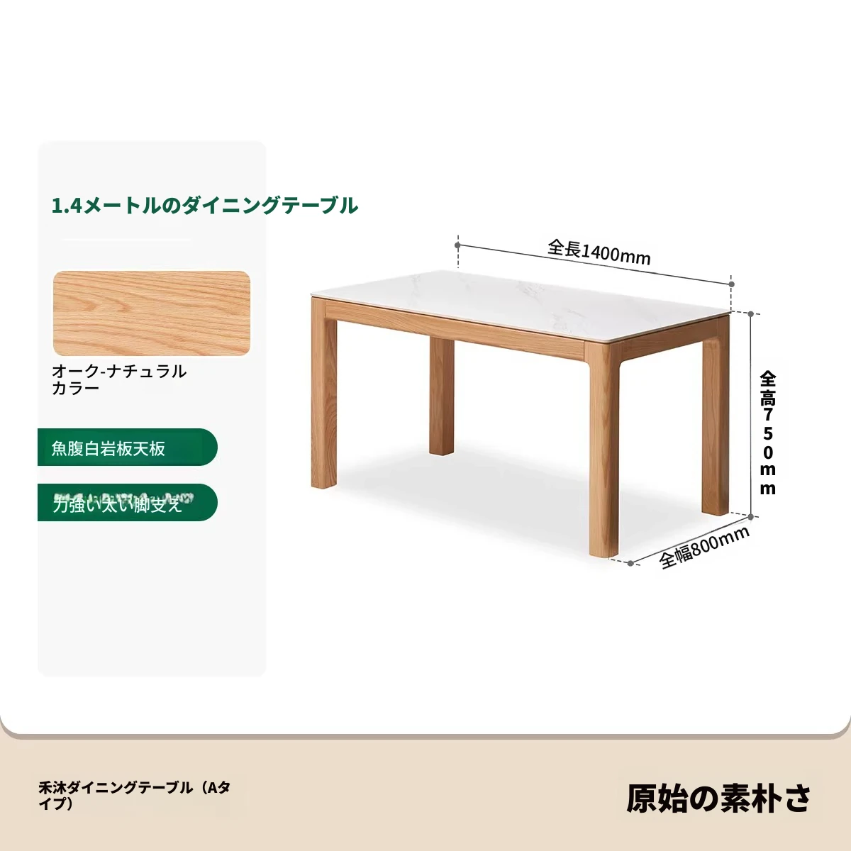 【オーク-ナチュラル】1.4メートル岩板ダイニングテーブル+シングルアームダイニングチェア*4(A3121)