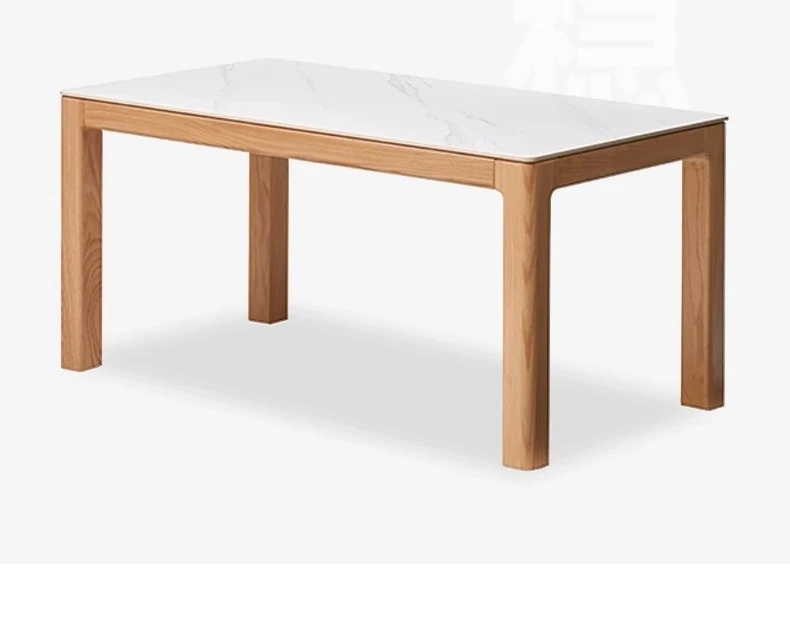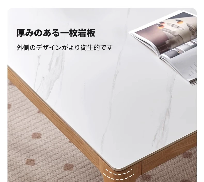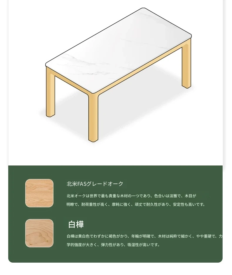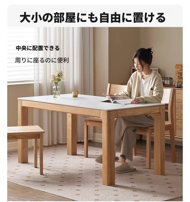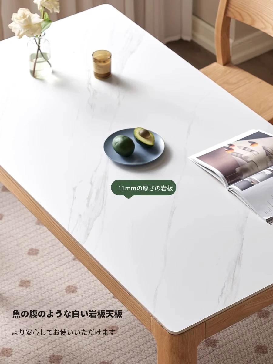 【オーク-ナチュラル】1.8メートル岩板ダイニングテーブル+シングルアームダイニングチェア*4(A3121)