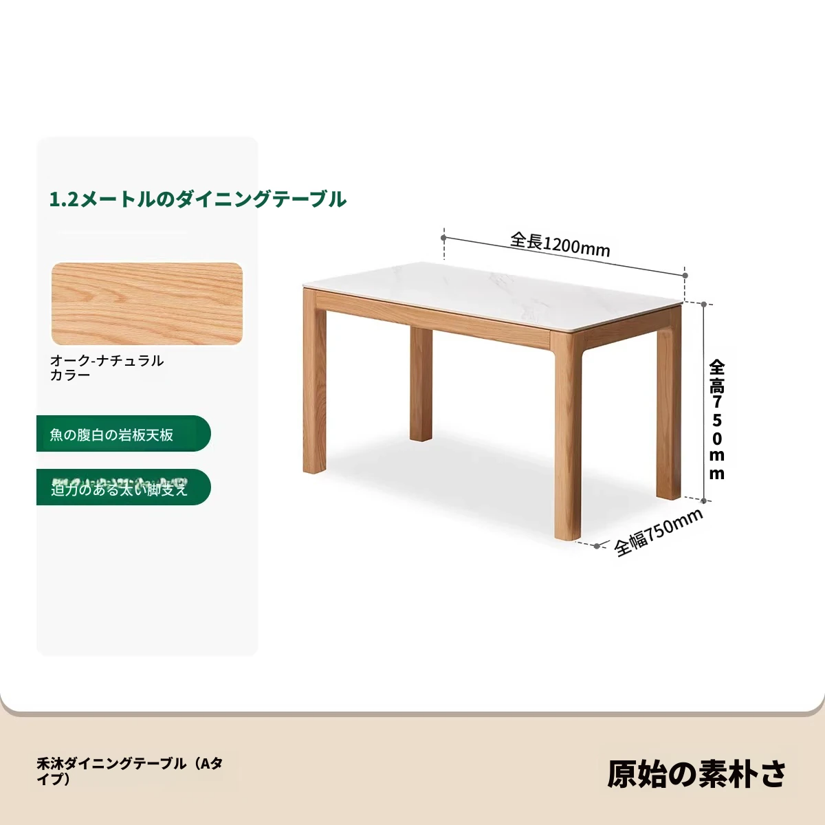 【オーク-ナチュラル】1.2メートルダイニングテーブル(1200*750*750mm)