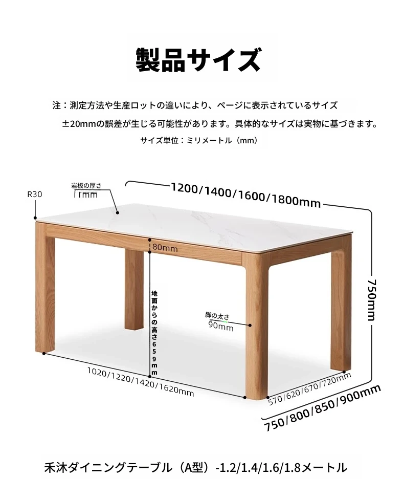 【オーク-ナチュラル】1.8メートルダイニングテーブル(1800*900*750mm)
