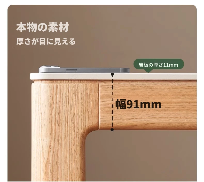 【オーク-ナチュラル】1.8メートル岩板ダイニングテーブル+ラインダイニングチェア(B型角脚)(H6122)