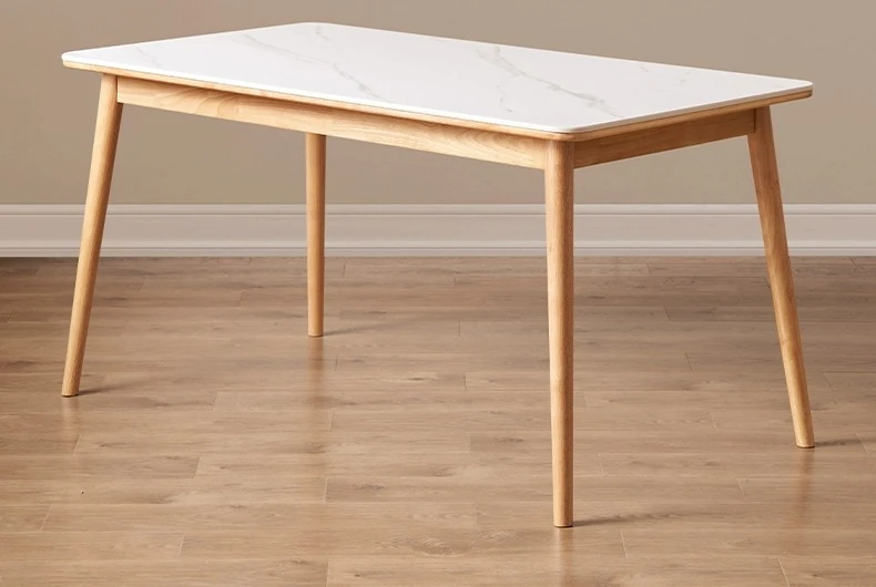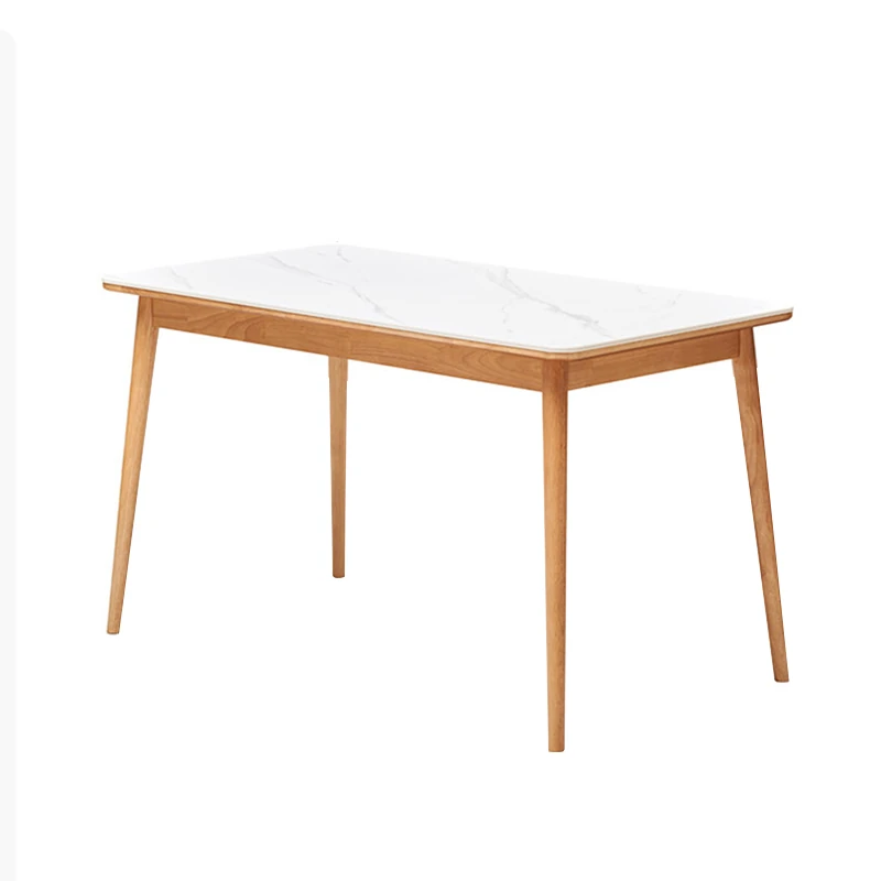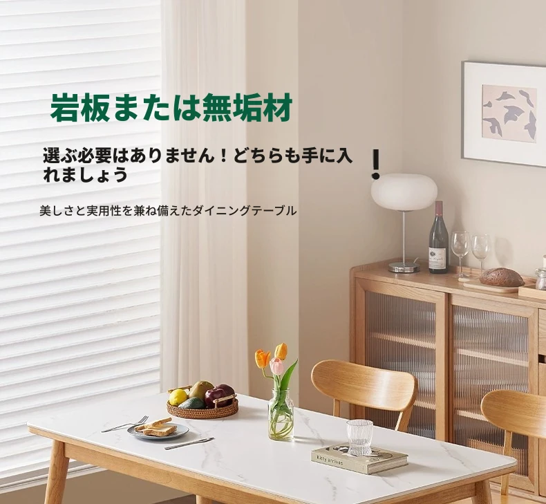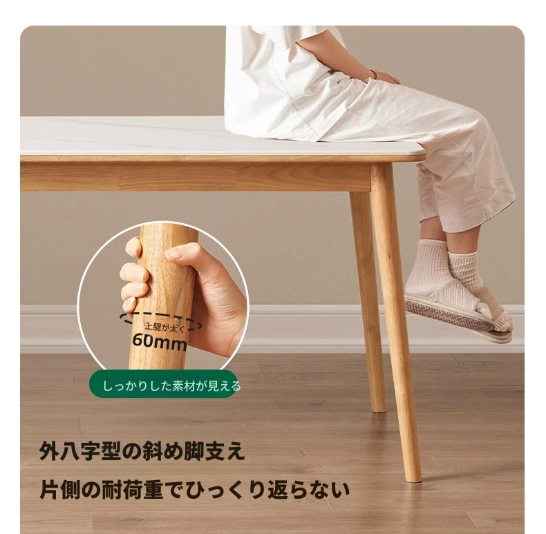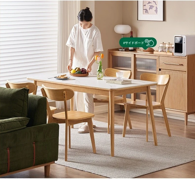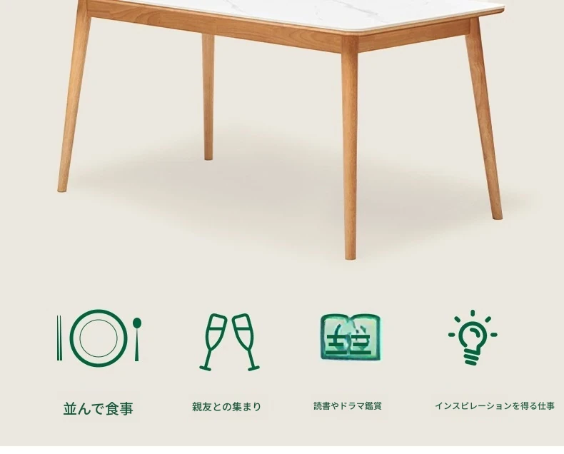 原木のモダンシンプルな実木ダイニングテーブル - 家庭用長方形テーブル、天然素材の温もりとスタイリッシュなデザインで、食事の時間を特別に演出します。