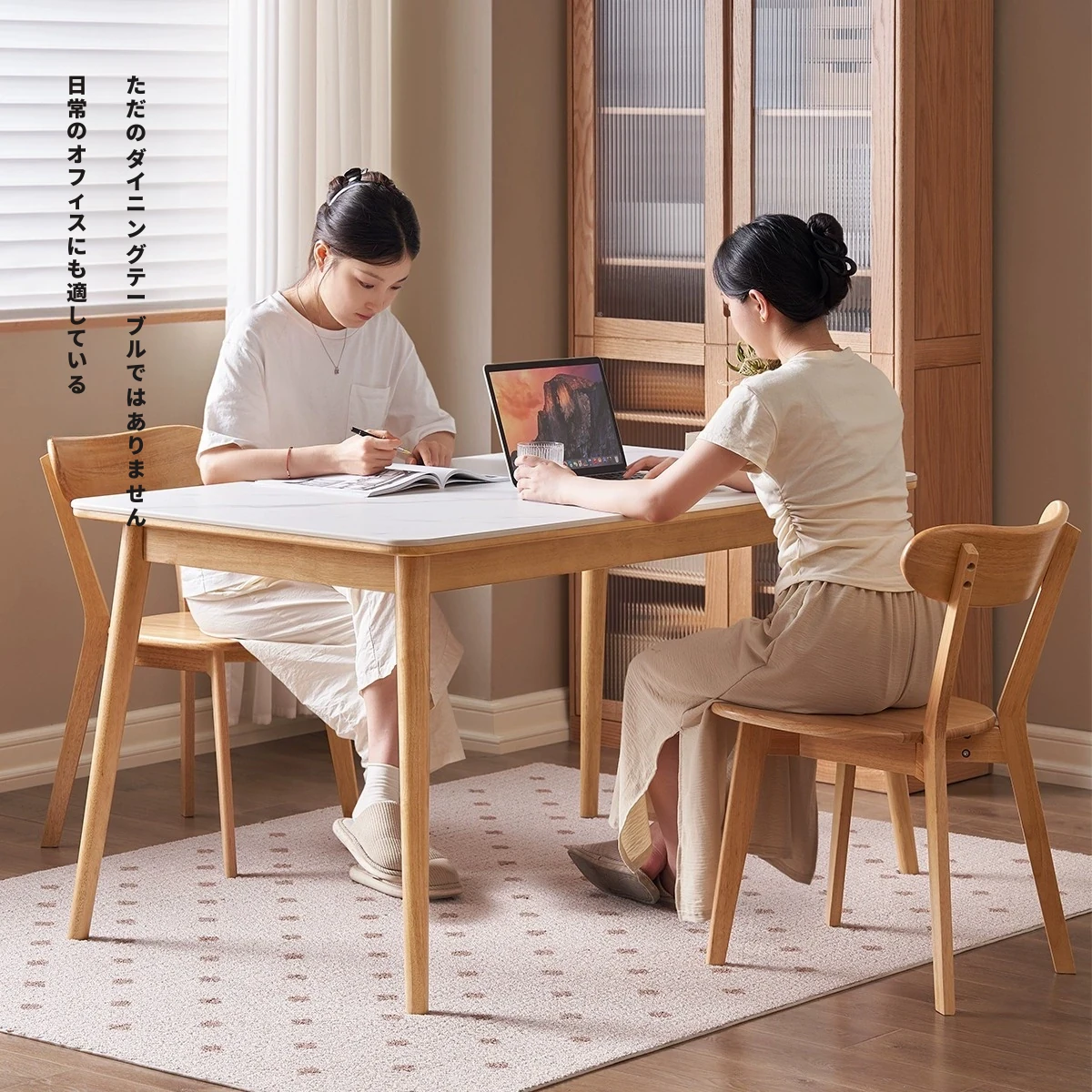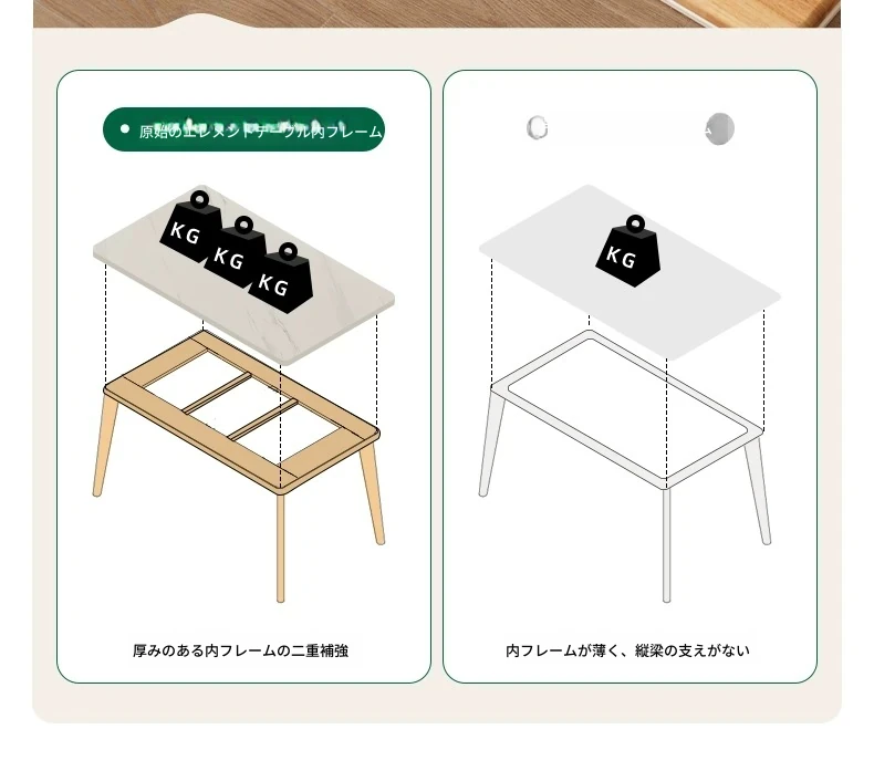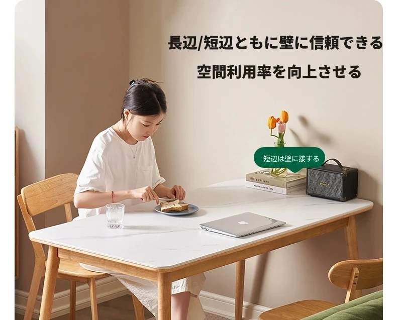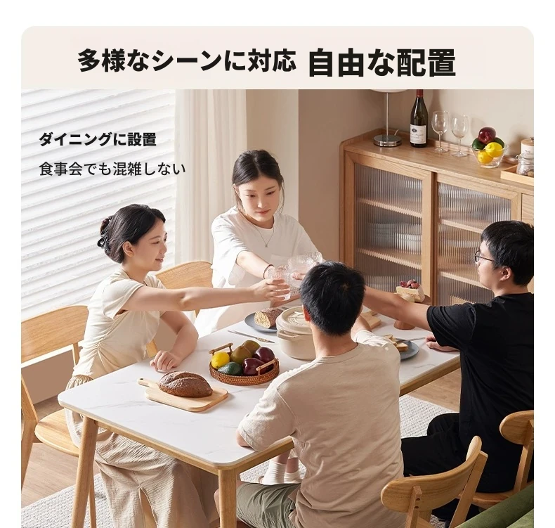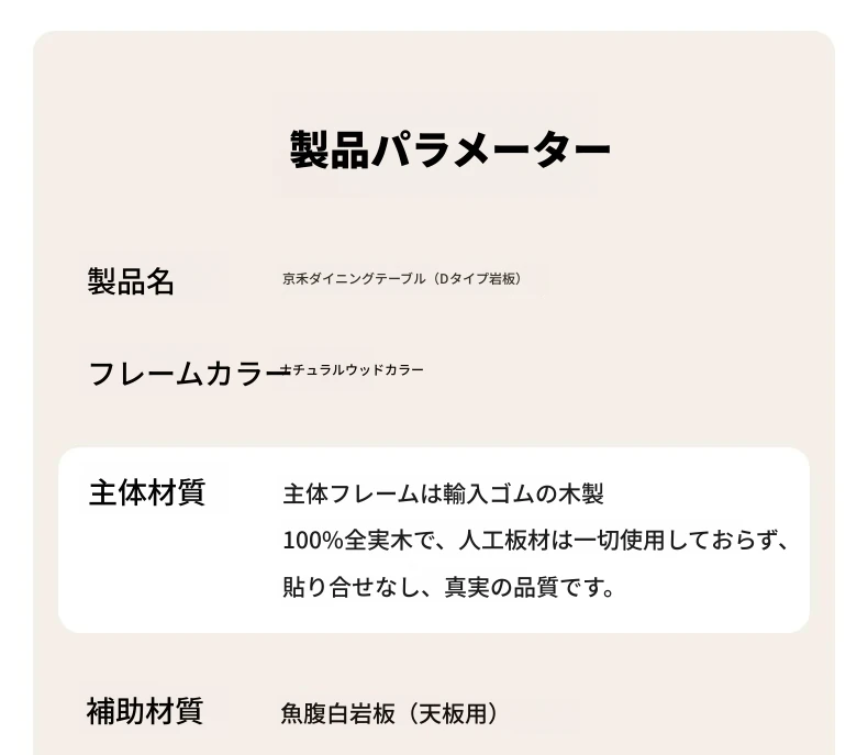 原木のモダンシンプルな実木ダイニングテーブル - 家庭用長方形テーブル、天然素材の温もりとスタイリッシュなデザインで、食事の時間を特別に演出します。