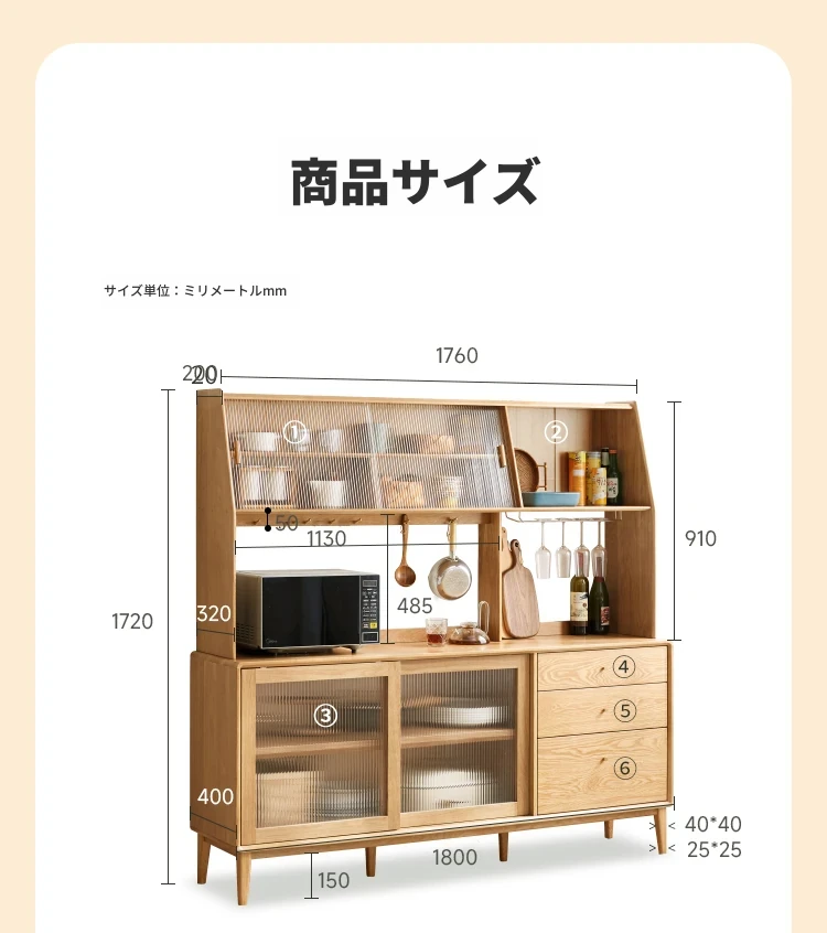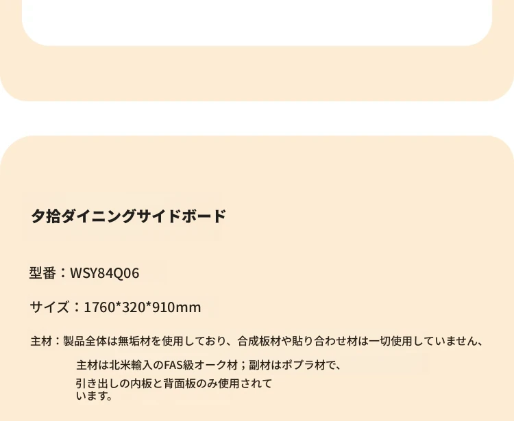 (4)-WSY84Q06 ダイニングサイドキャビネット上部-1.76メートル(1760*320*910mm)