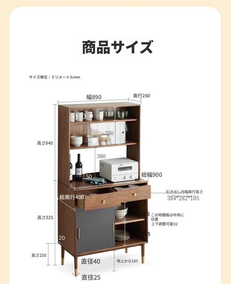 (1)-G2067 ダイニングサイドキャビネット上部(890*260*840mm)