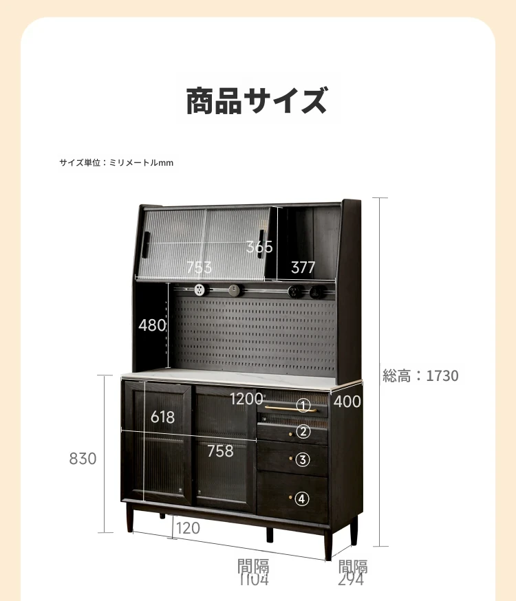 (3)-F02026-1 ダイニングサイドキャビネット-上部-1.18メートル(1180*270*900mm)