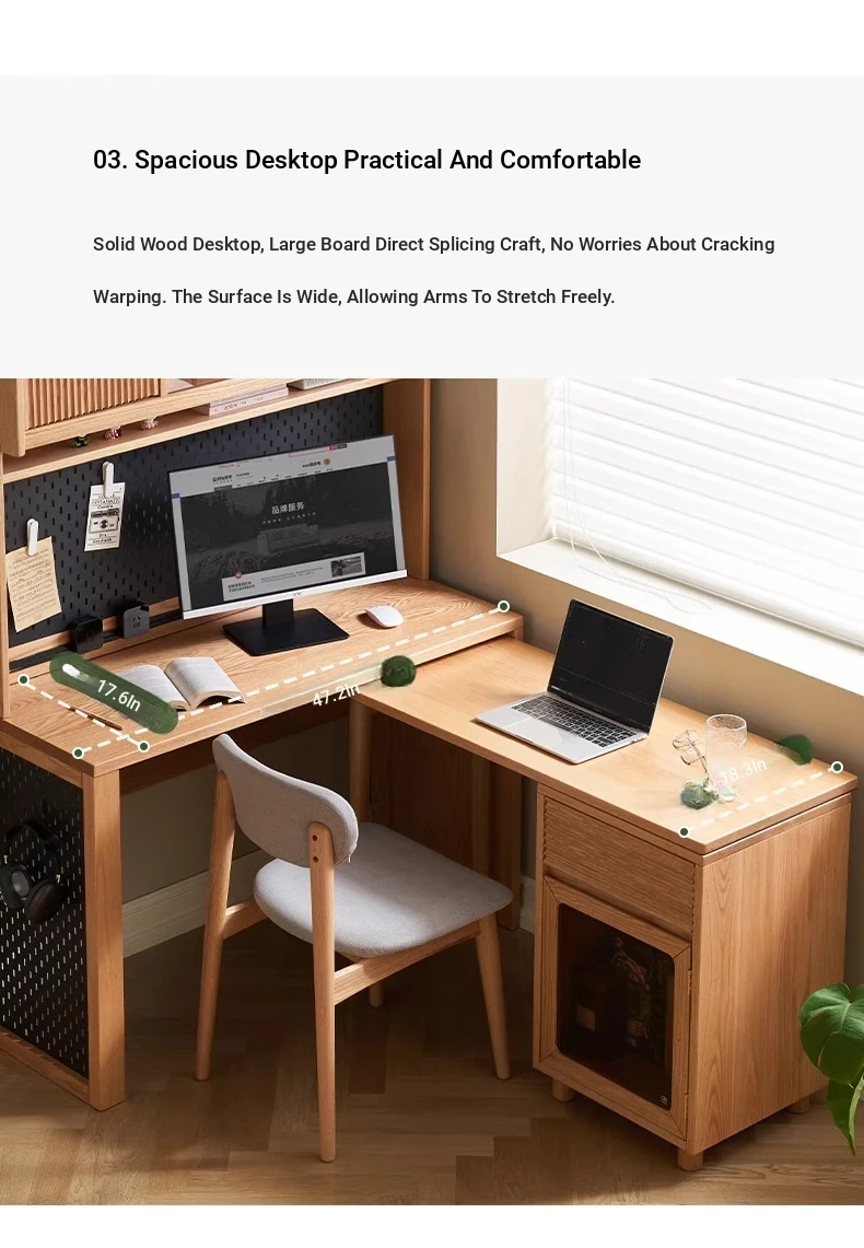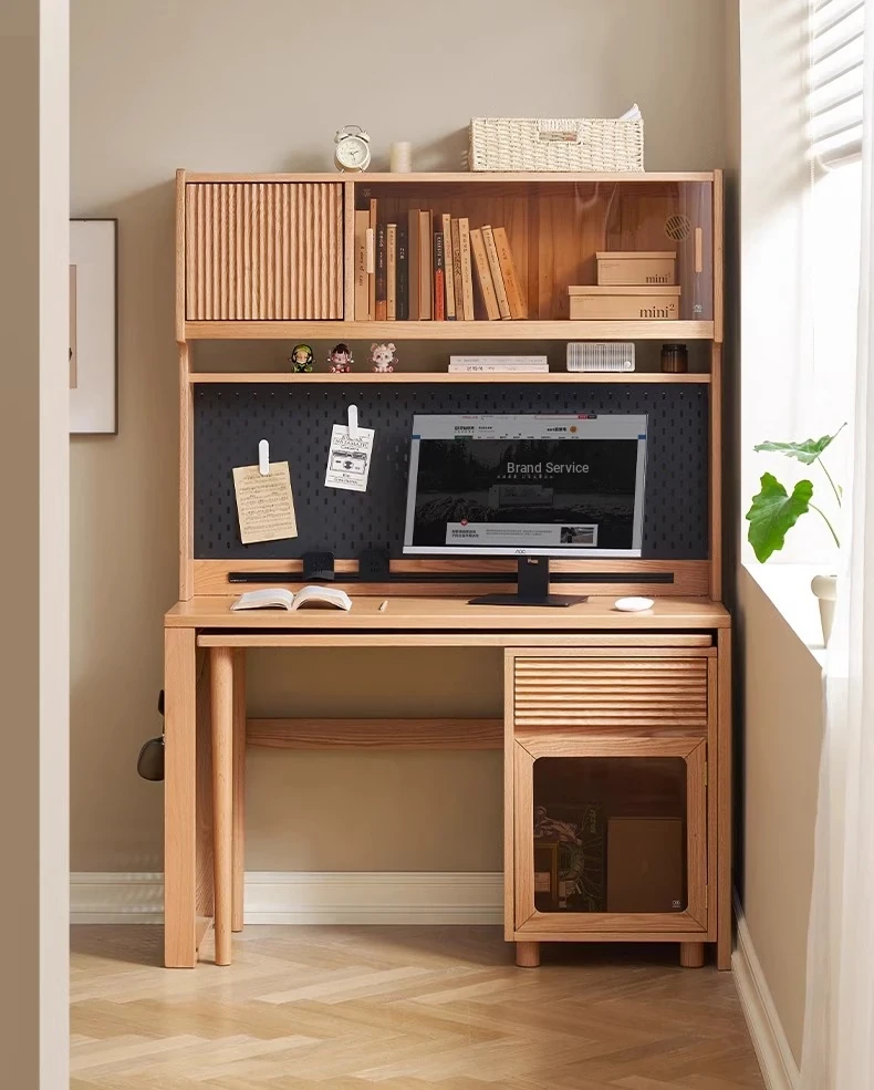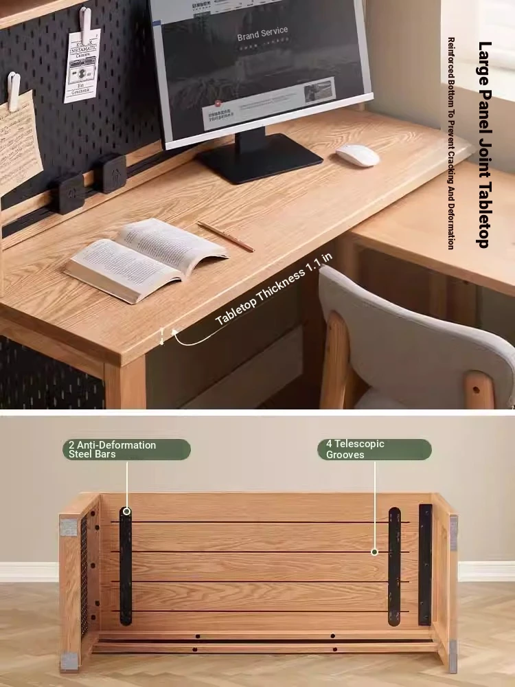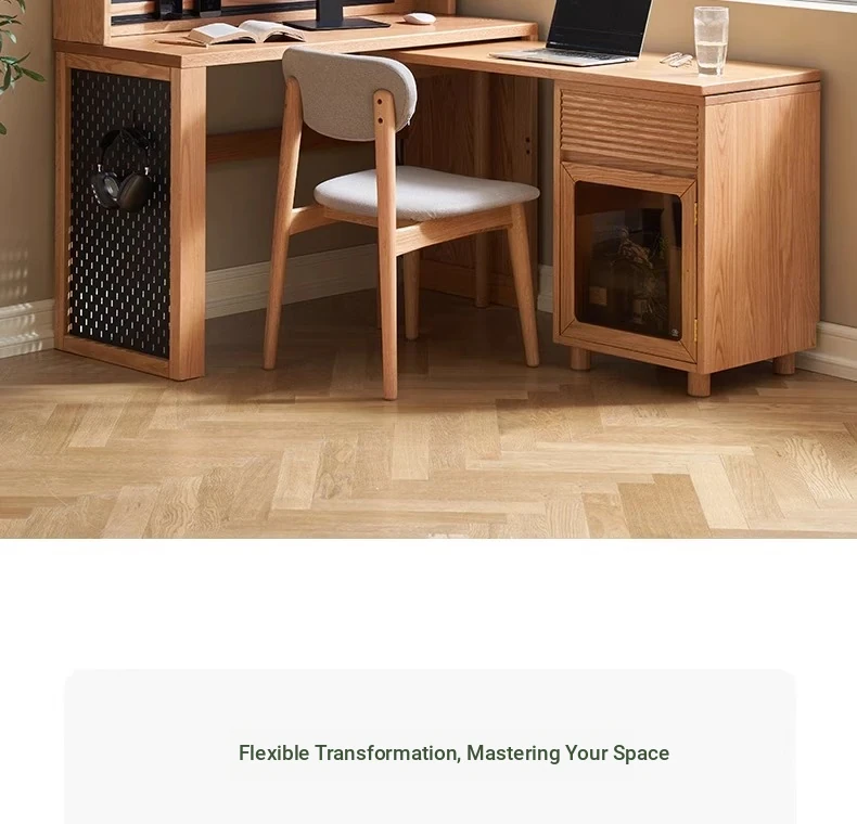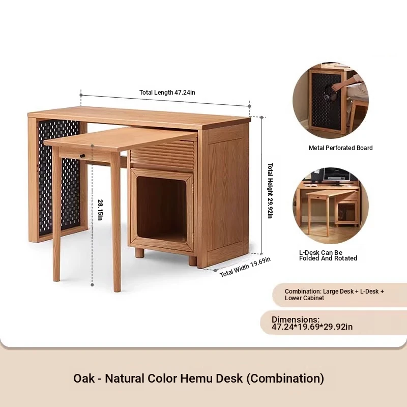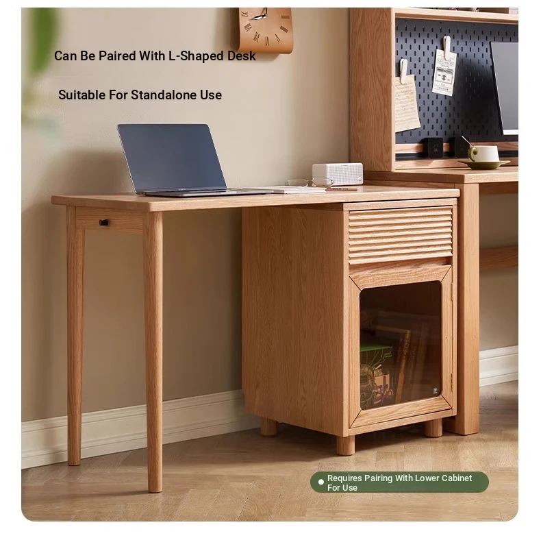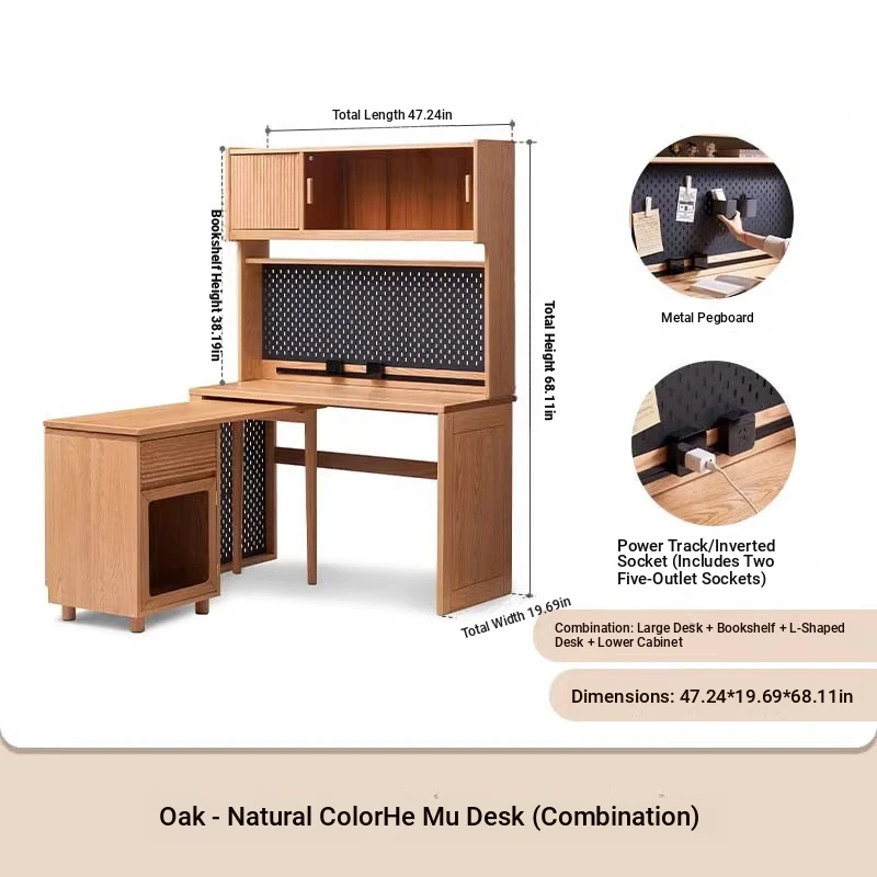 [Oak-Log Color] Large Desk + Bookshelf + L Table + Lower Cabinet