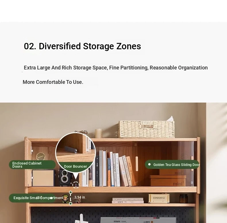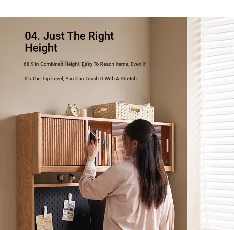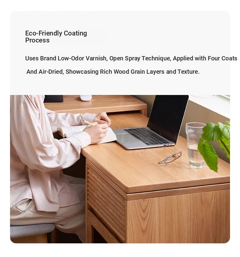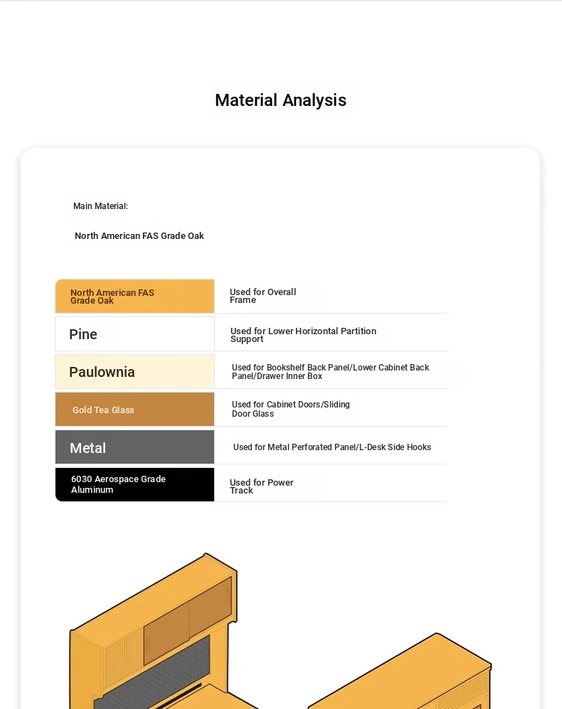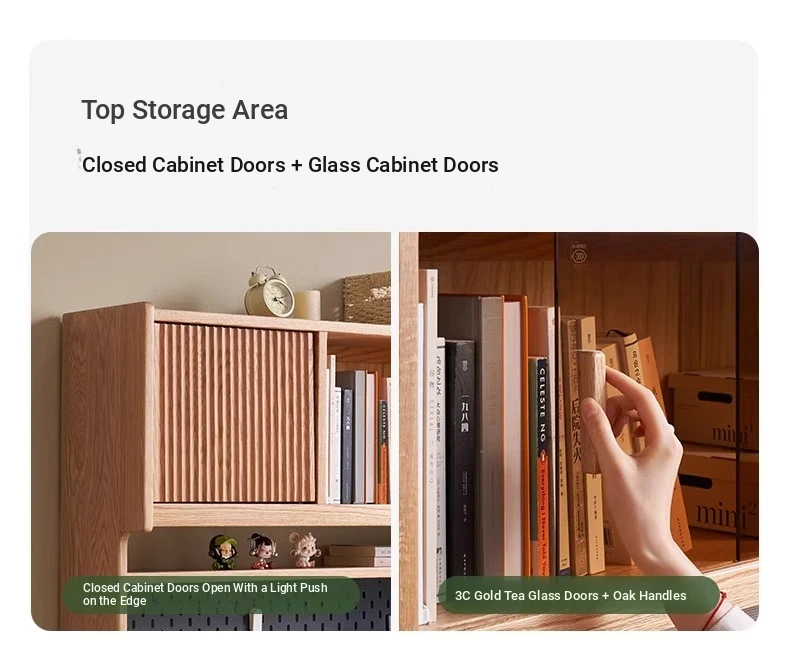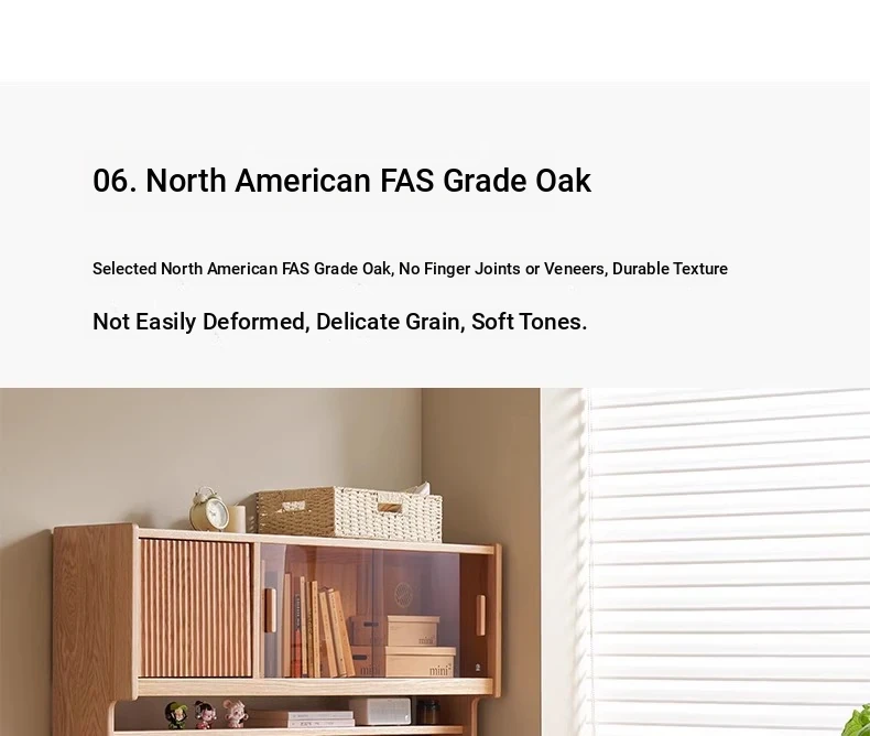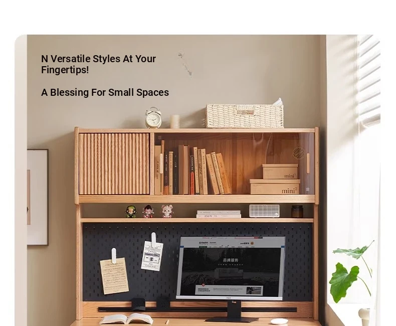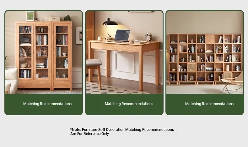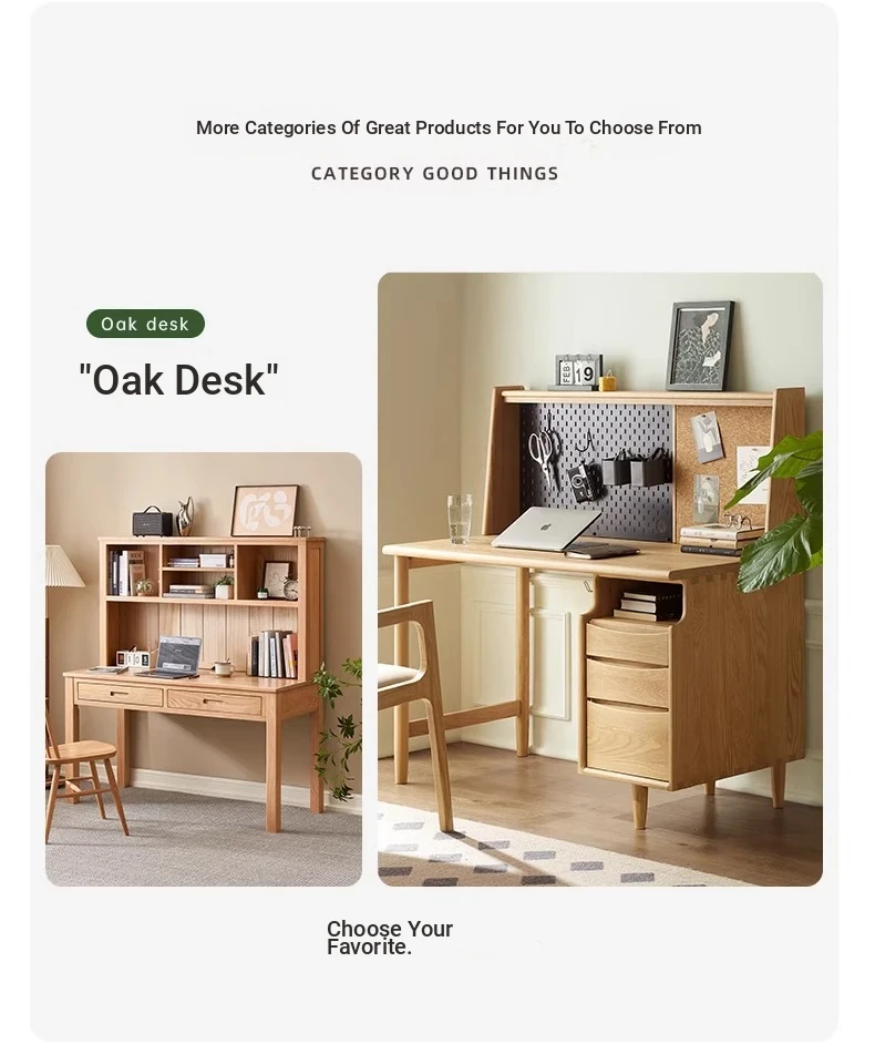 [Oak-Log Color] Large Desk + Bookshelf + L Table + Lower Cabinet