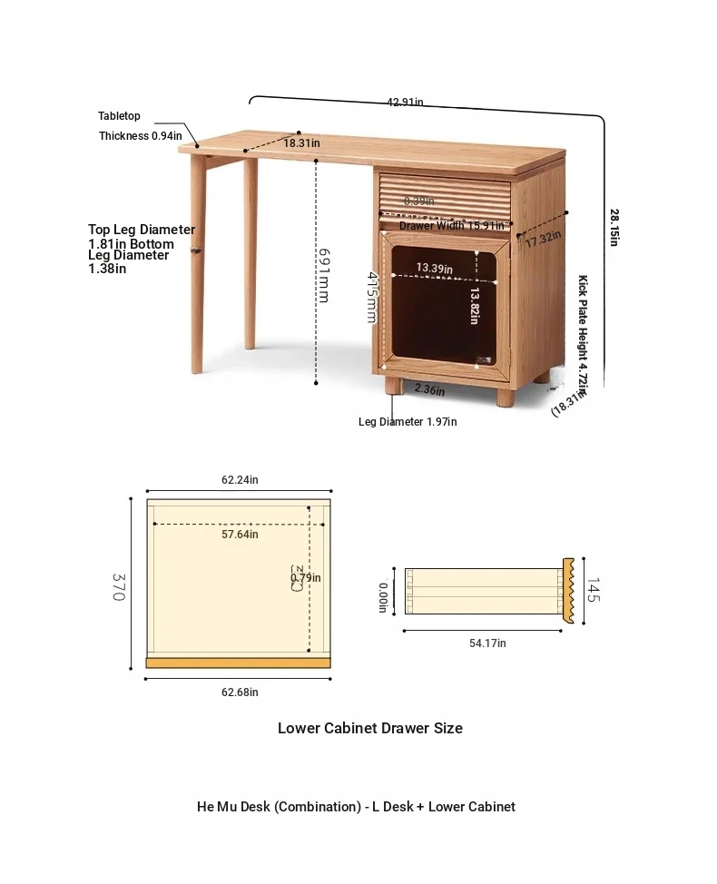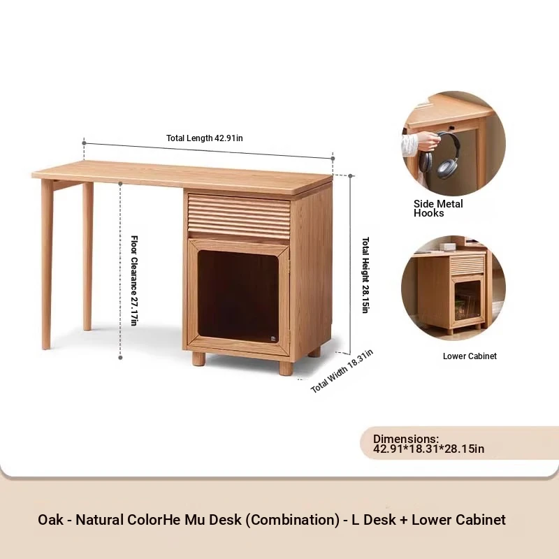 [Oak-log color] 42.91 in small desk + lower cabinet (42.91in*18.31in*28.15in)