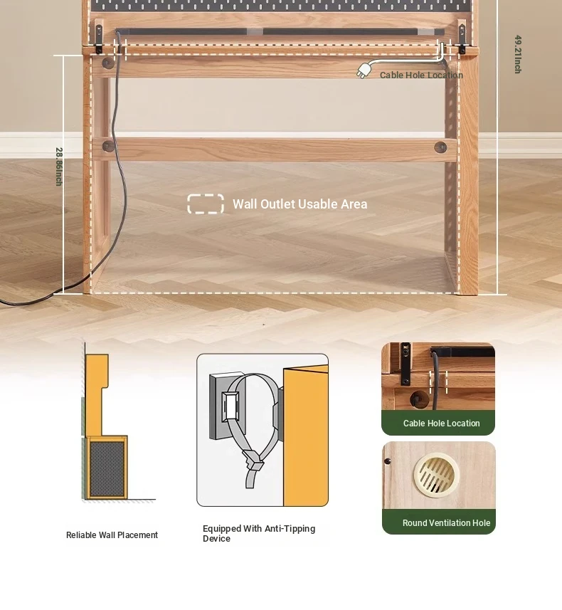 [Oak-Log Color] 47.24 in Desk + Lower Cabinet (47.24in*19.69in*29.92in)