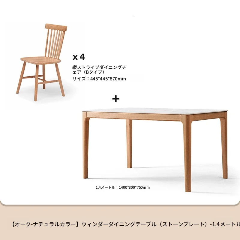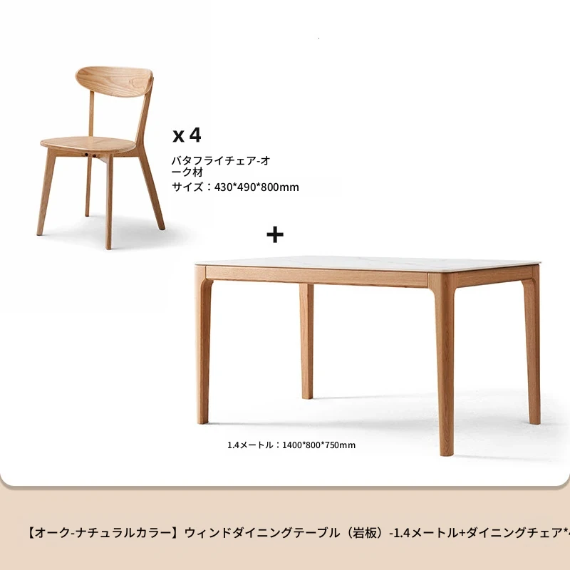 【オーク-ナチュラルカラー】1.4メートルテーブル4椅子(A7121)