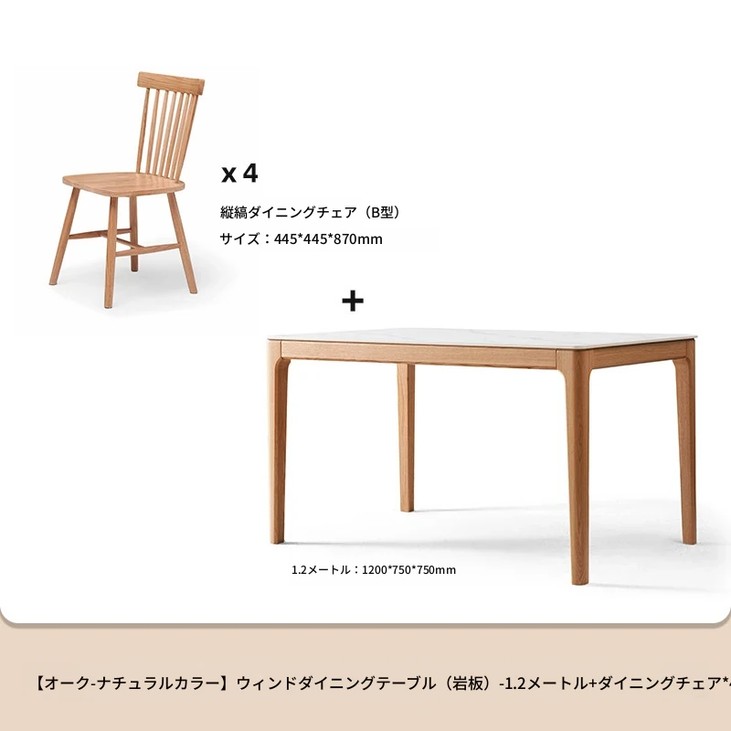 【オーク-ナチュラルカラー】1.2メートルテーブル4椅子(A7121)