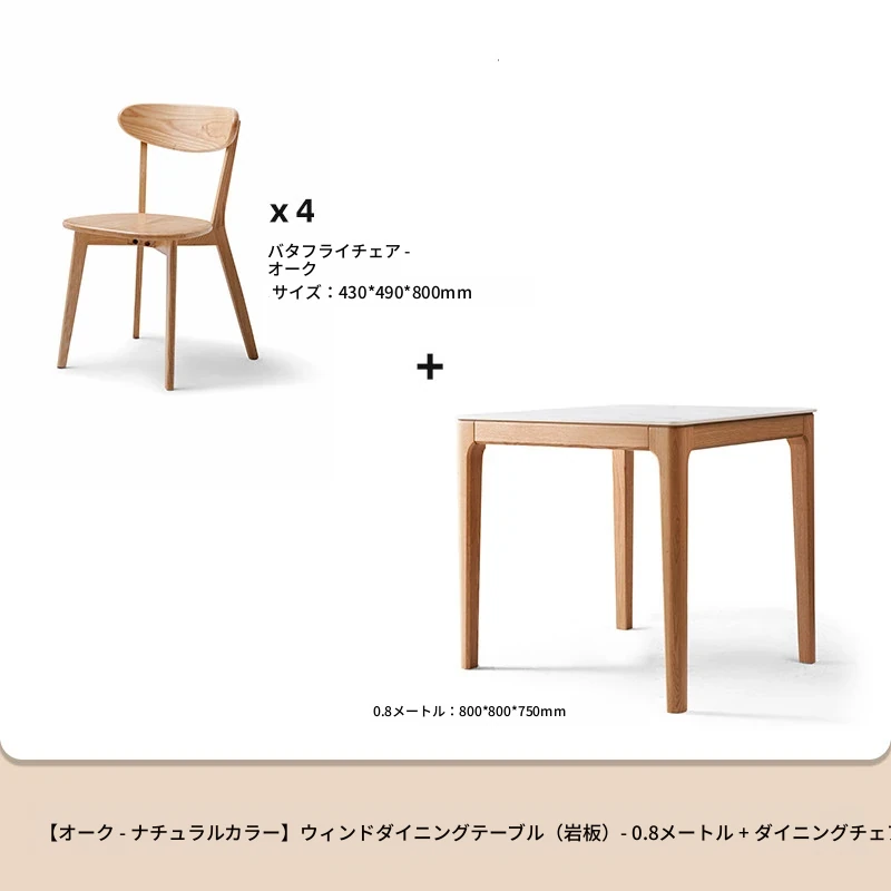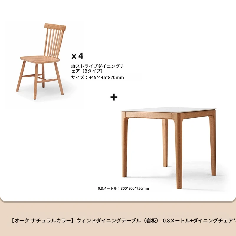 【オーク-ナチュラルカラー】0.8メートルテーブル4椅子(B3121)
